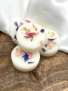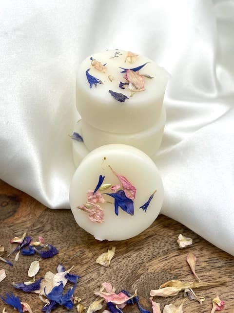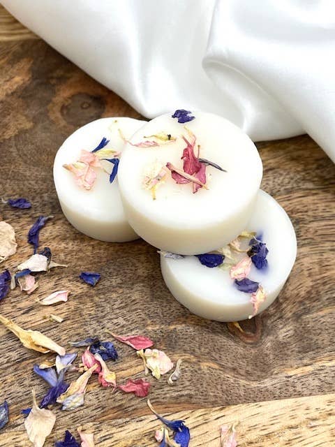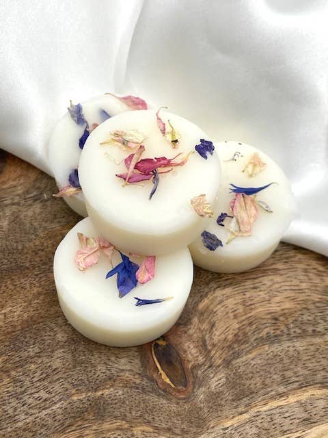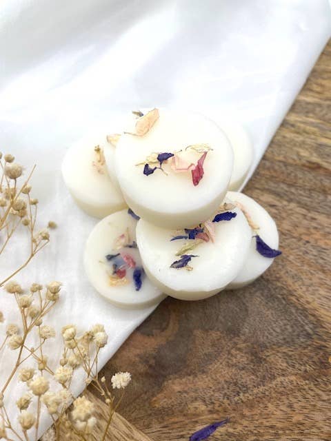 A delightful aroma of juicy black plums and fresh rhubarb with hints of sweet peach and ripe pear that combine with vanilla. Each wax melt is delicately decorated with dried botanicals.