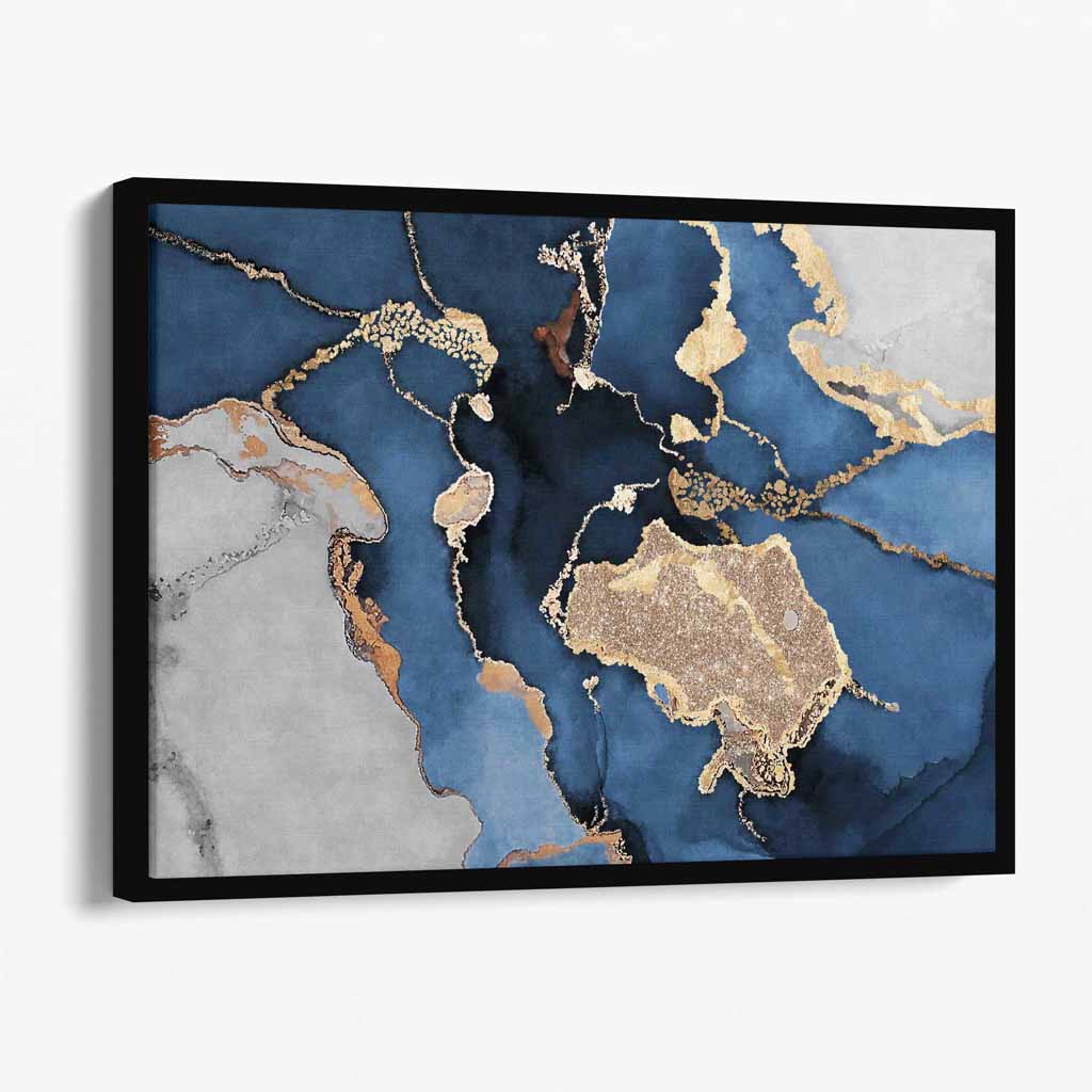 Abstract Navy Blue, Grey and Gold Canvas Art Print
