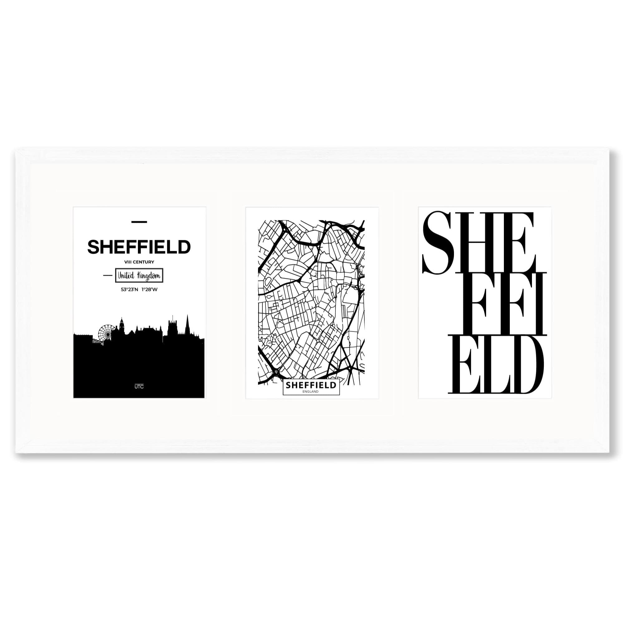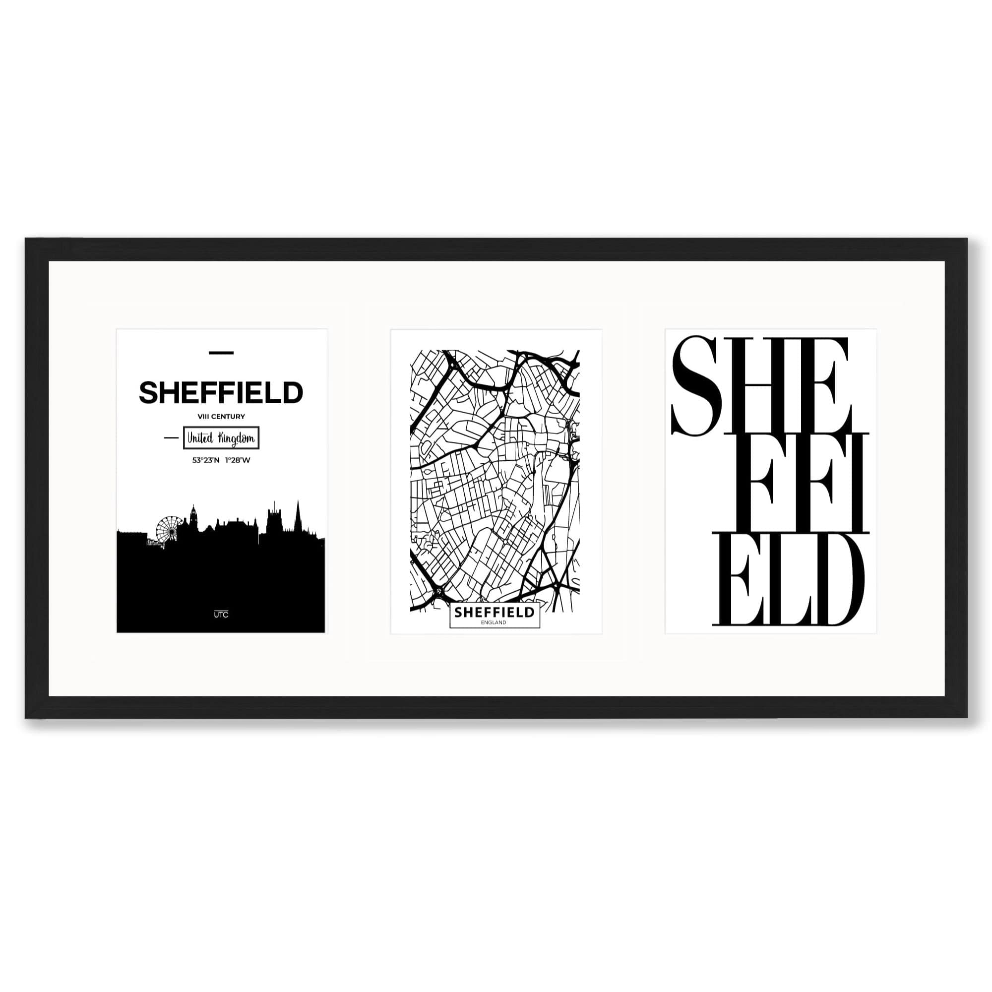 Celebrate your Favourite City with this Black and White triptych framed Sheffield print set. Makes a perfect gift as well for Friends and Family.