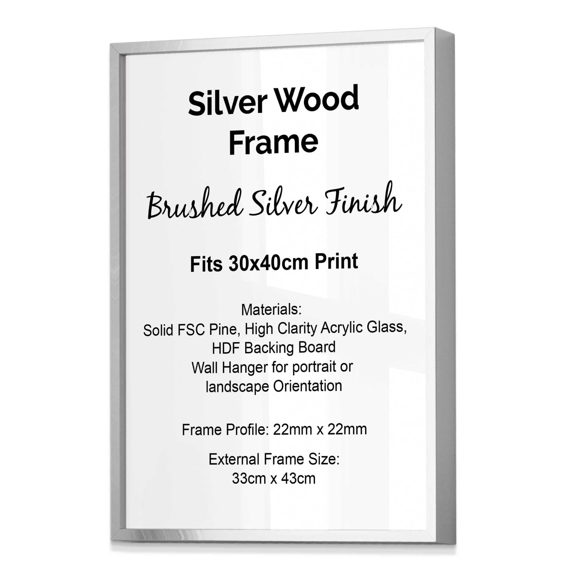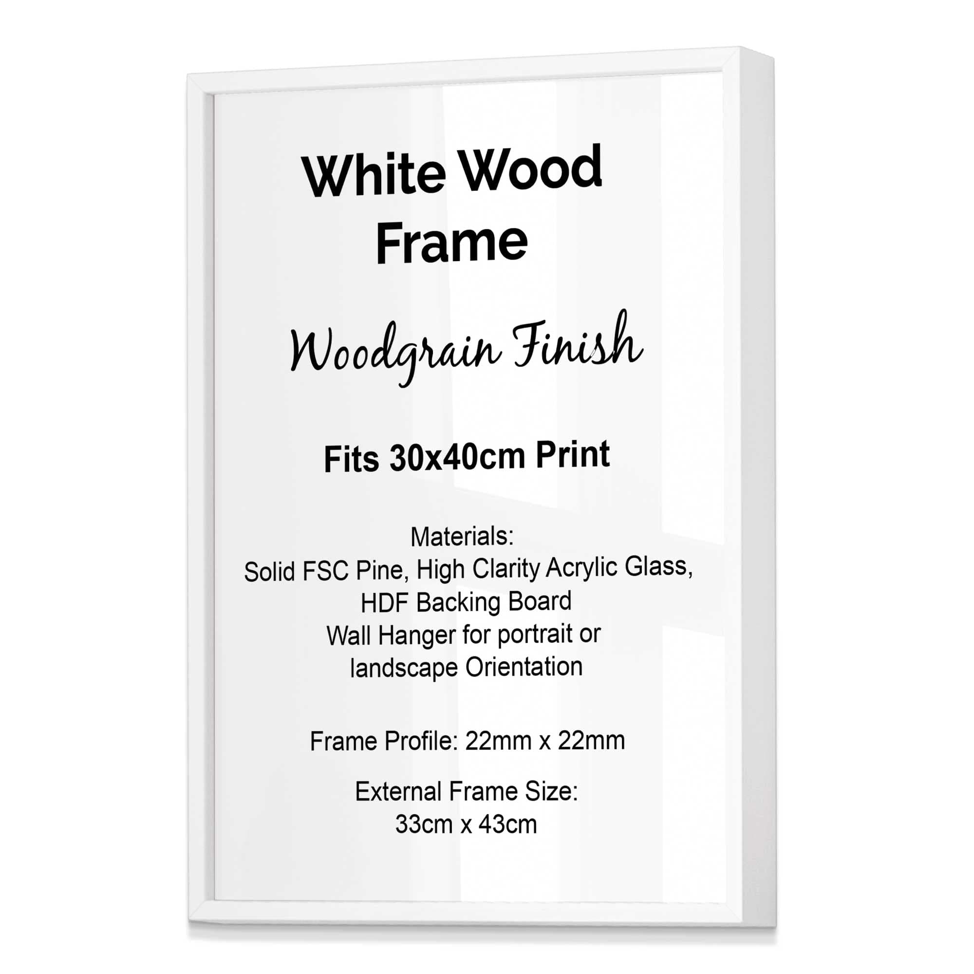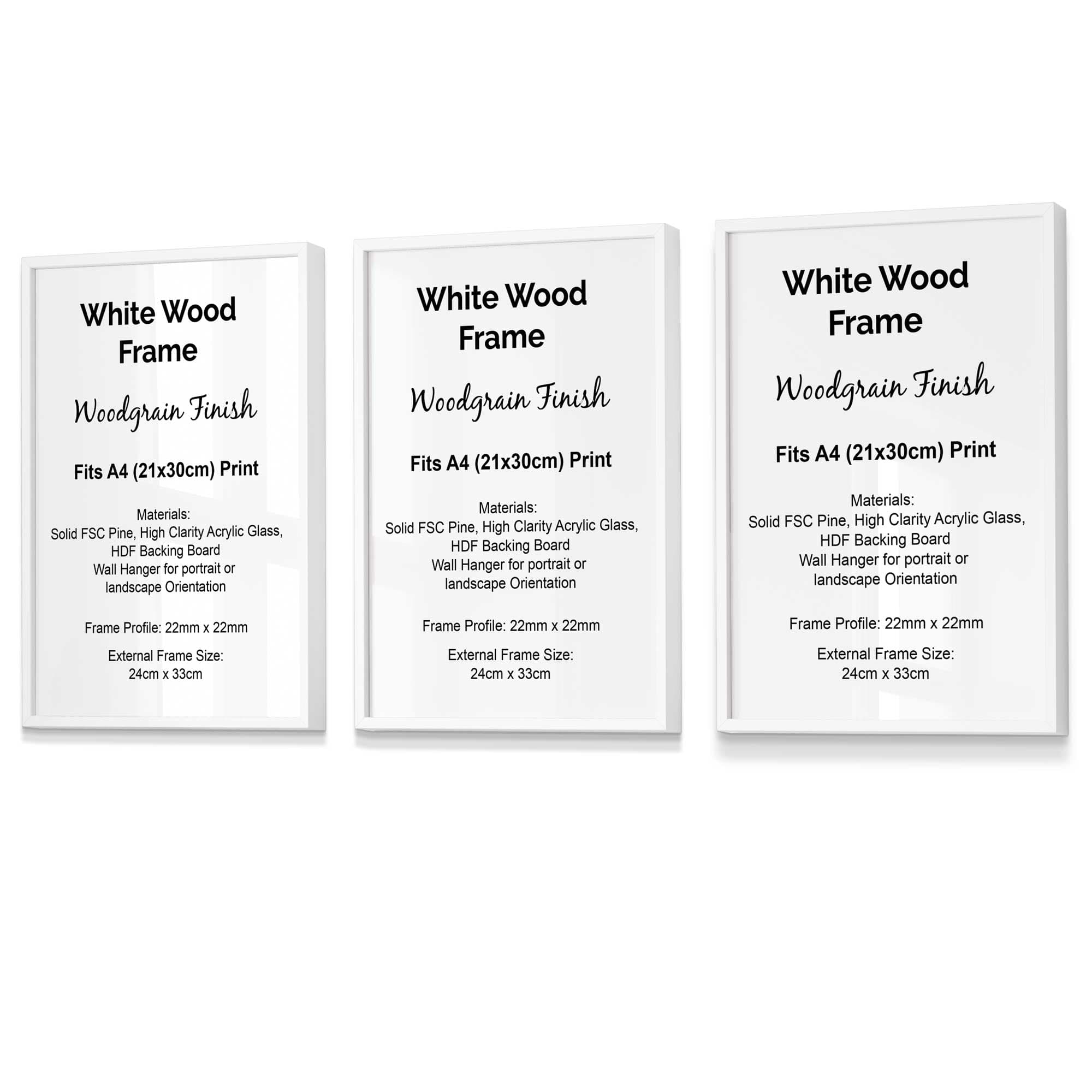 Not only do our frames look stylish but they help protect your wall prints from dirt and keeps them in pristine condition. Each frame is completed with a high clarity acrylic glass to protect your wall art, as well as an MDF back to secure it in place. Additionally, all our frames are supplied with hangers for wall hanging and can be hung either portrait or landscape.