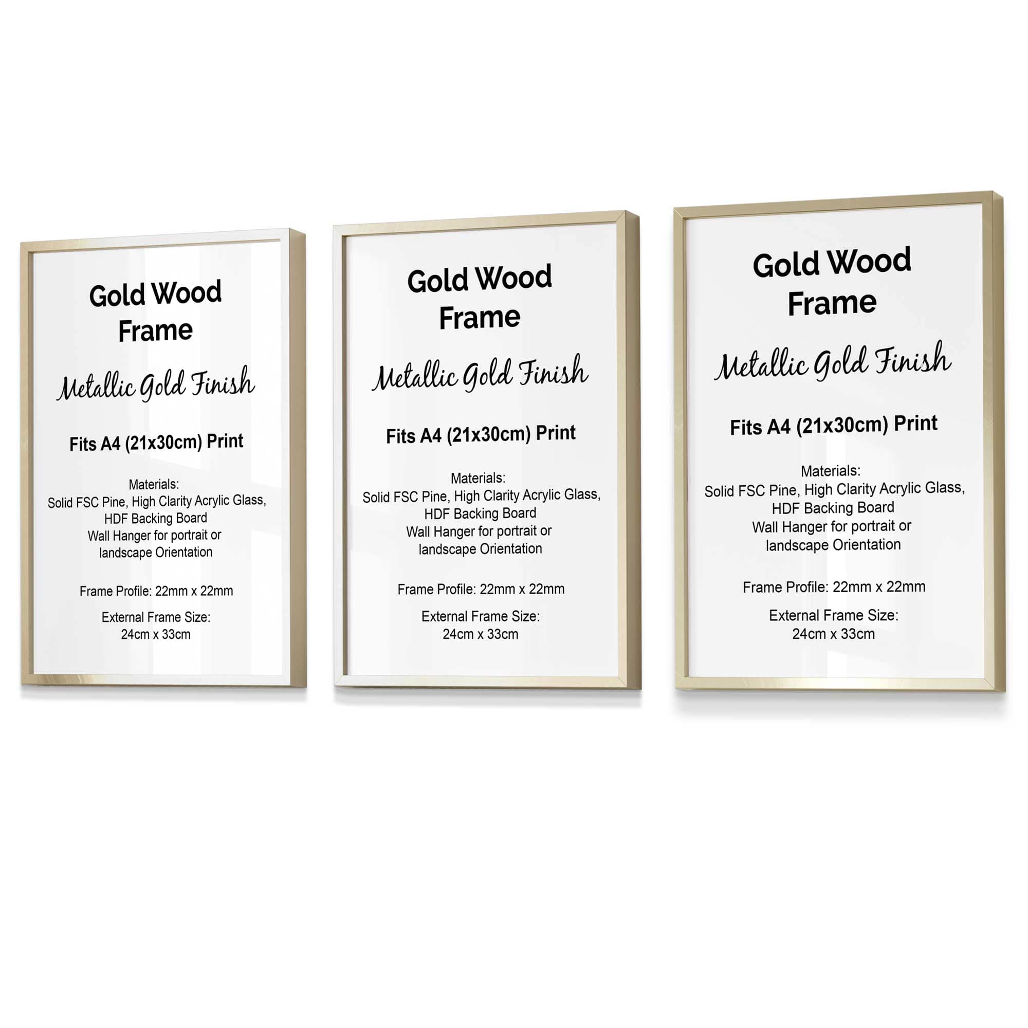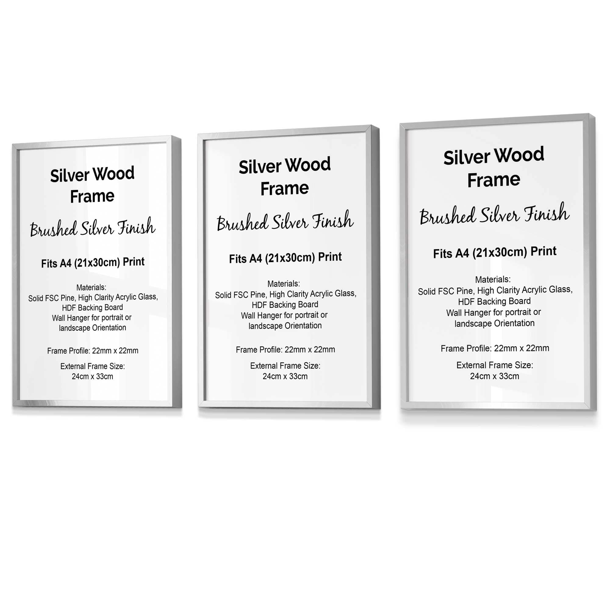 Additionally, all of our frames are available to purchase as singles, sets of 3 or sets of 5 to match your print options.