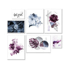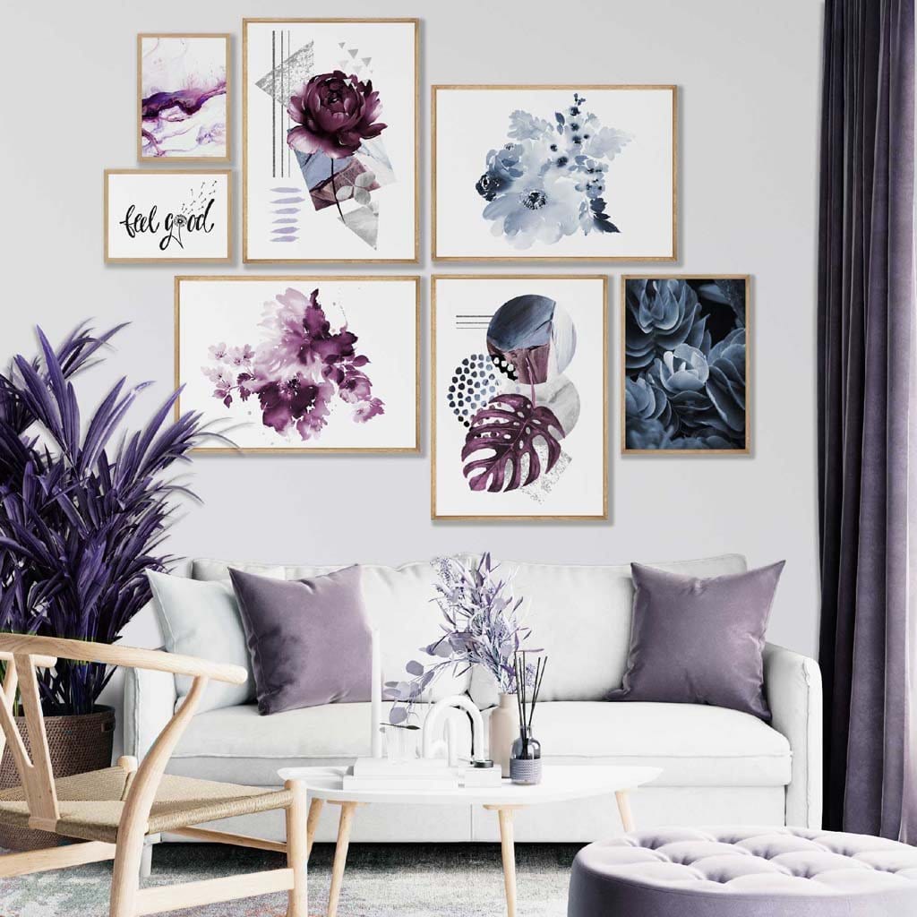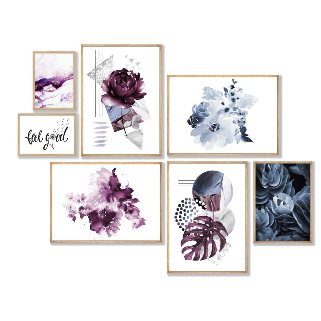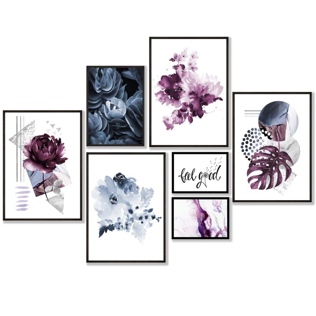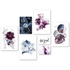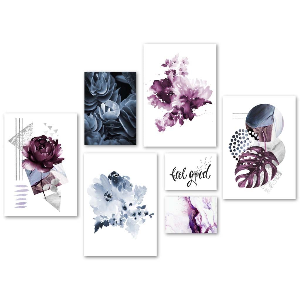 Set of 7 Abstract Purple and Blue Floral Gallery Wall Art Prints