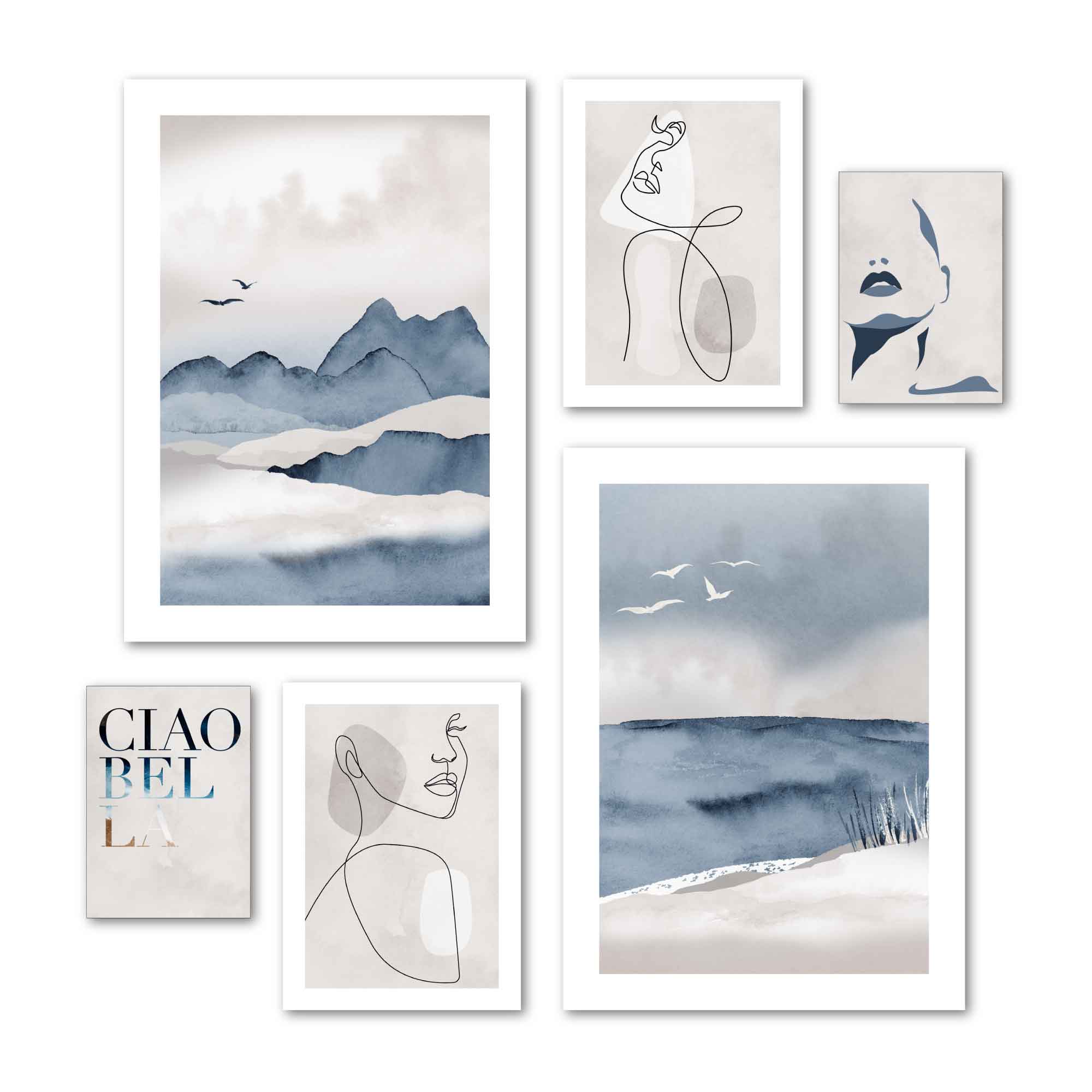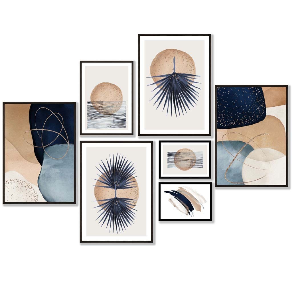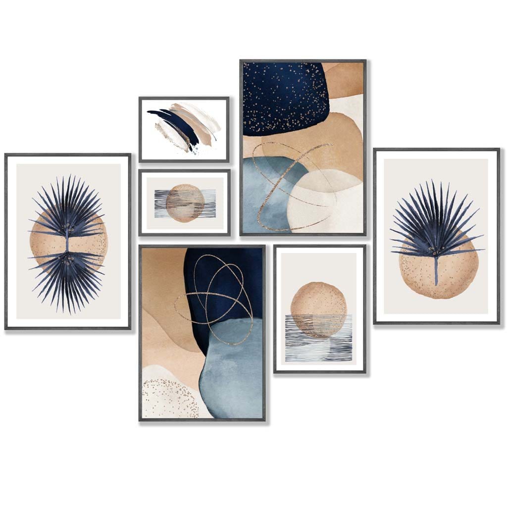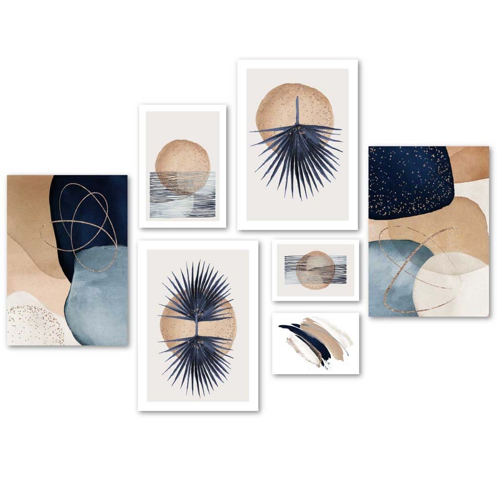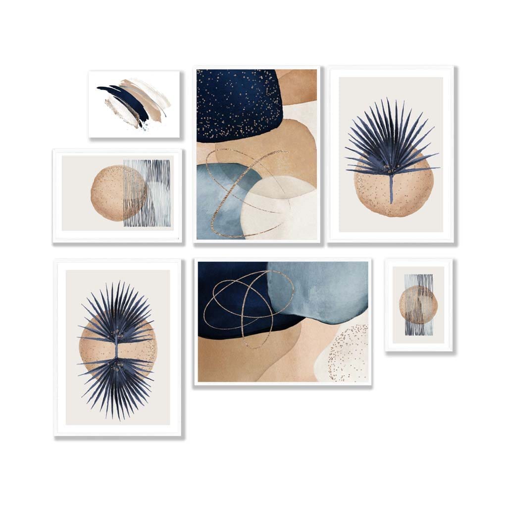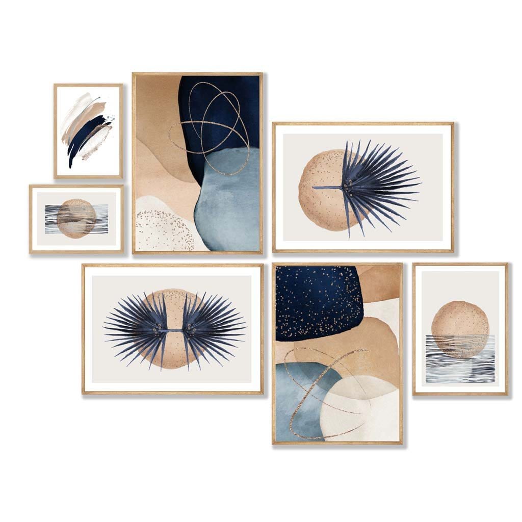 Set of 6 Abstract Blue and Beige Gallery Wall
