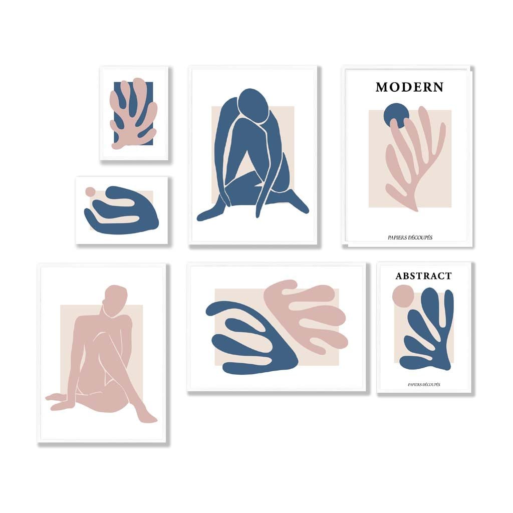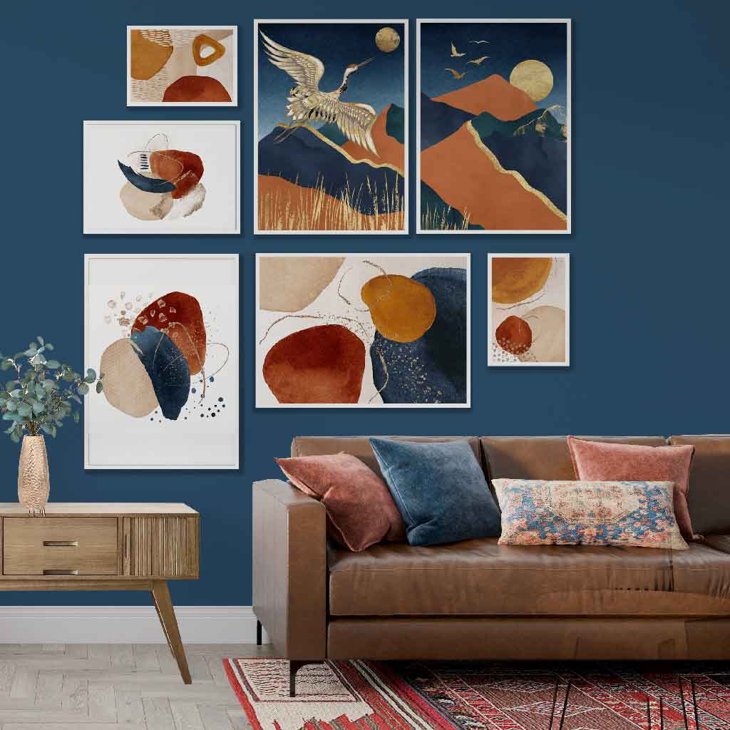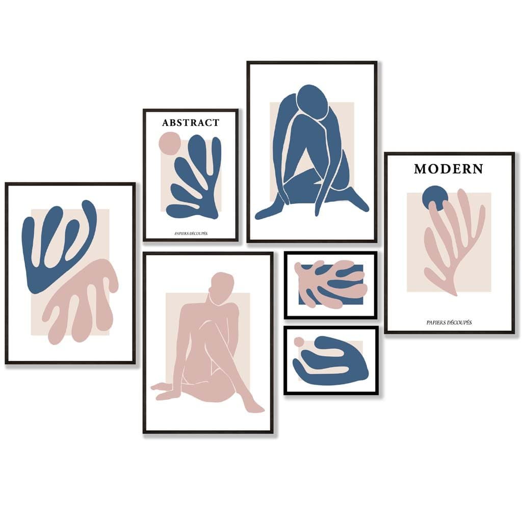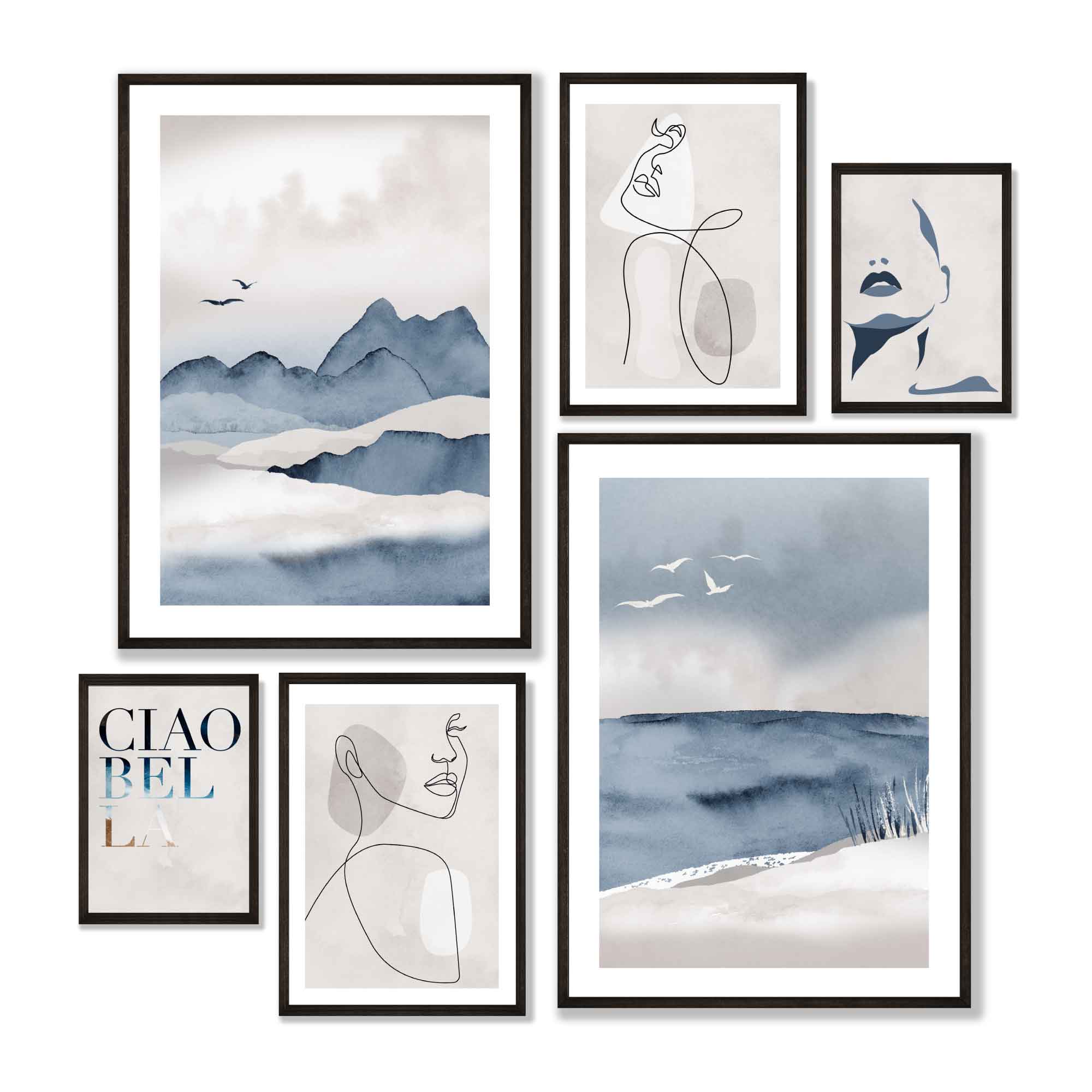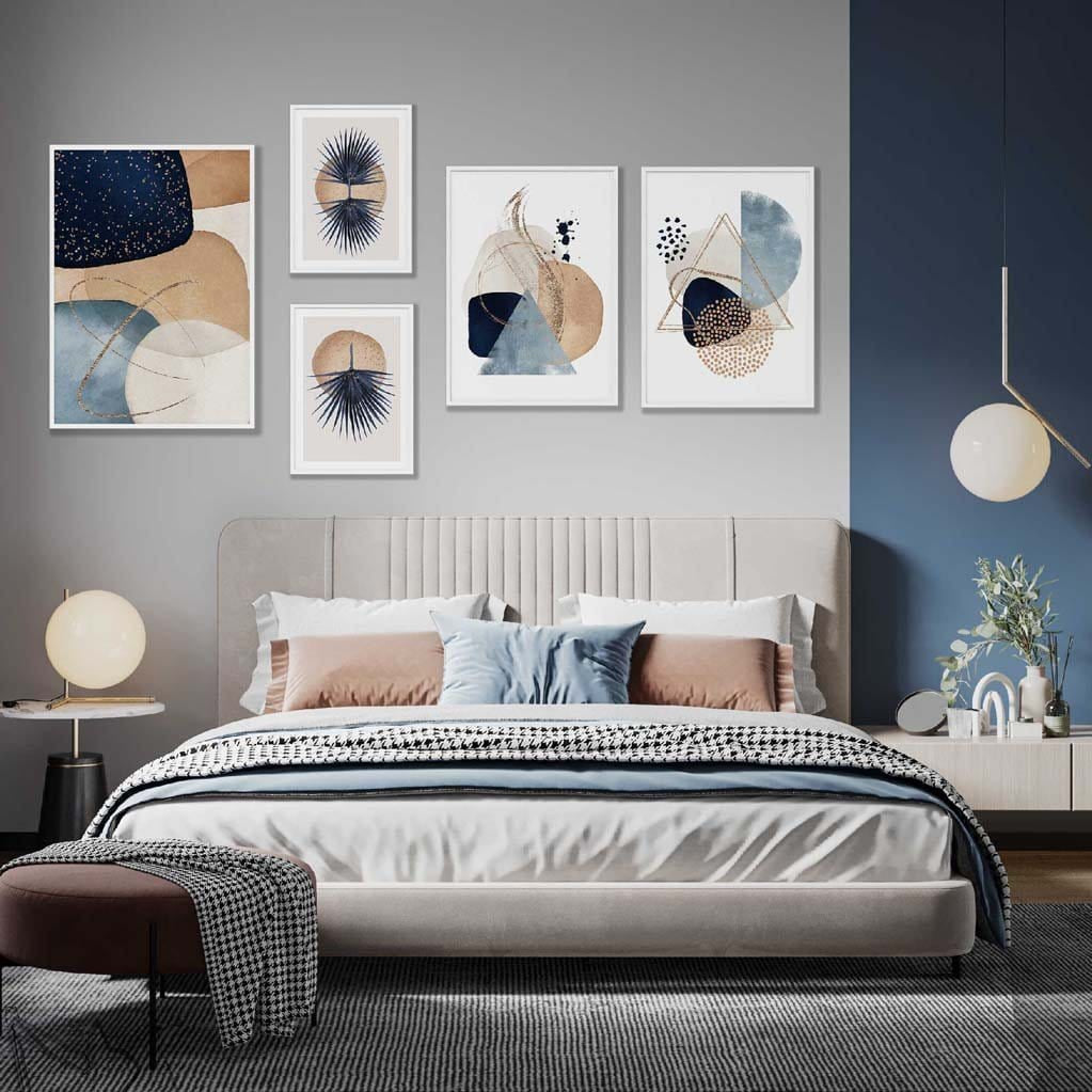 Set of 6 Abstract Blue and Beige Gallery Wall