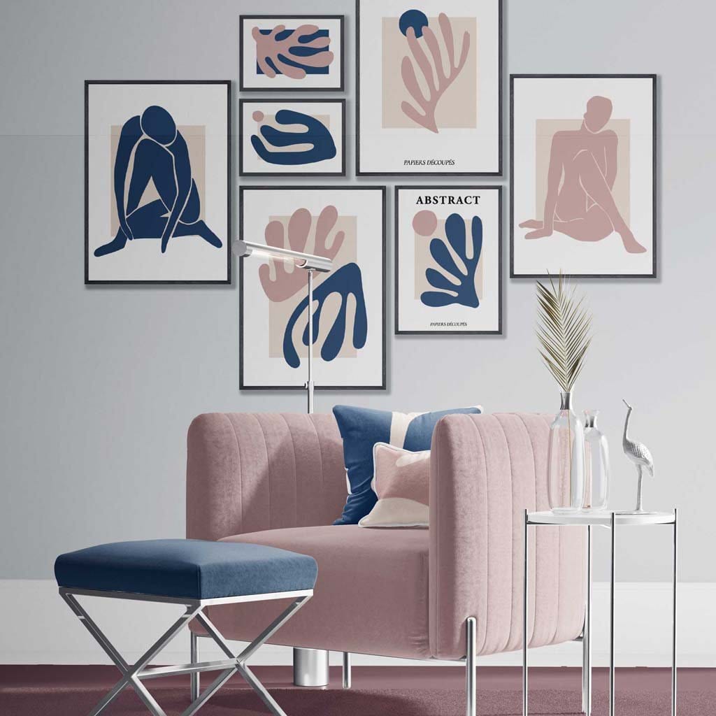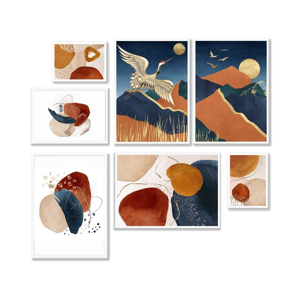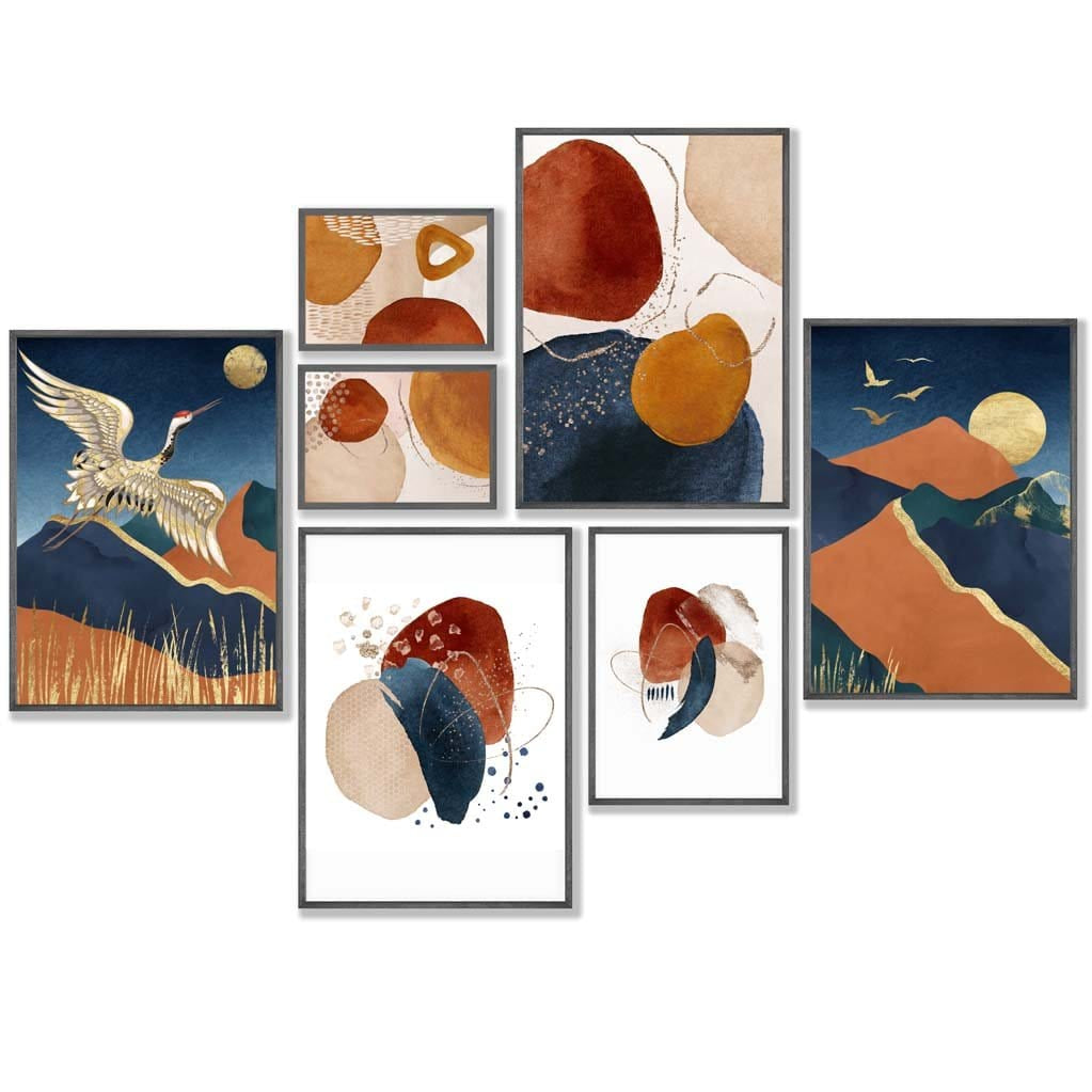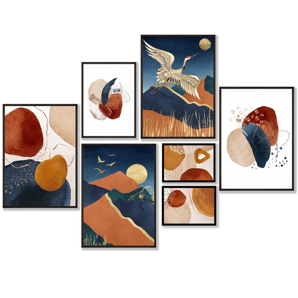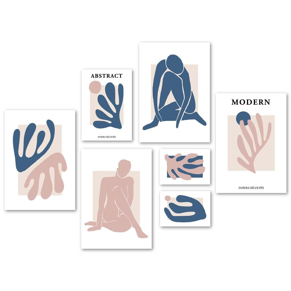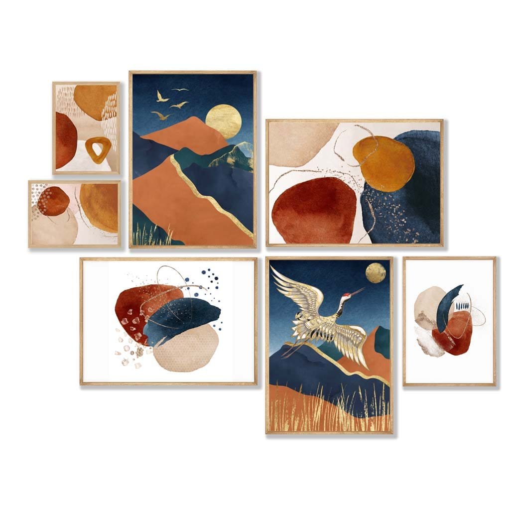 Set of 6 Abstract Blue and Beige Gallery Wall