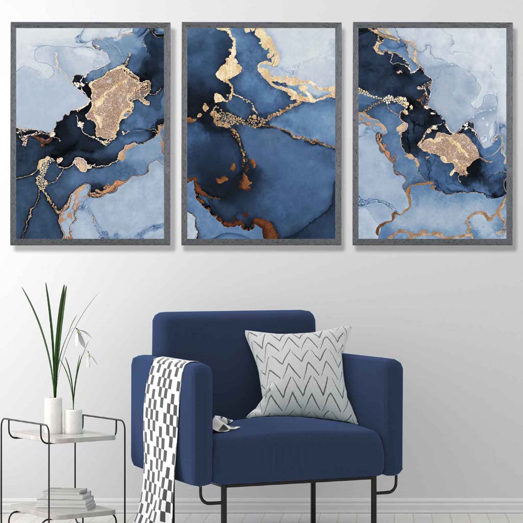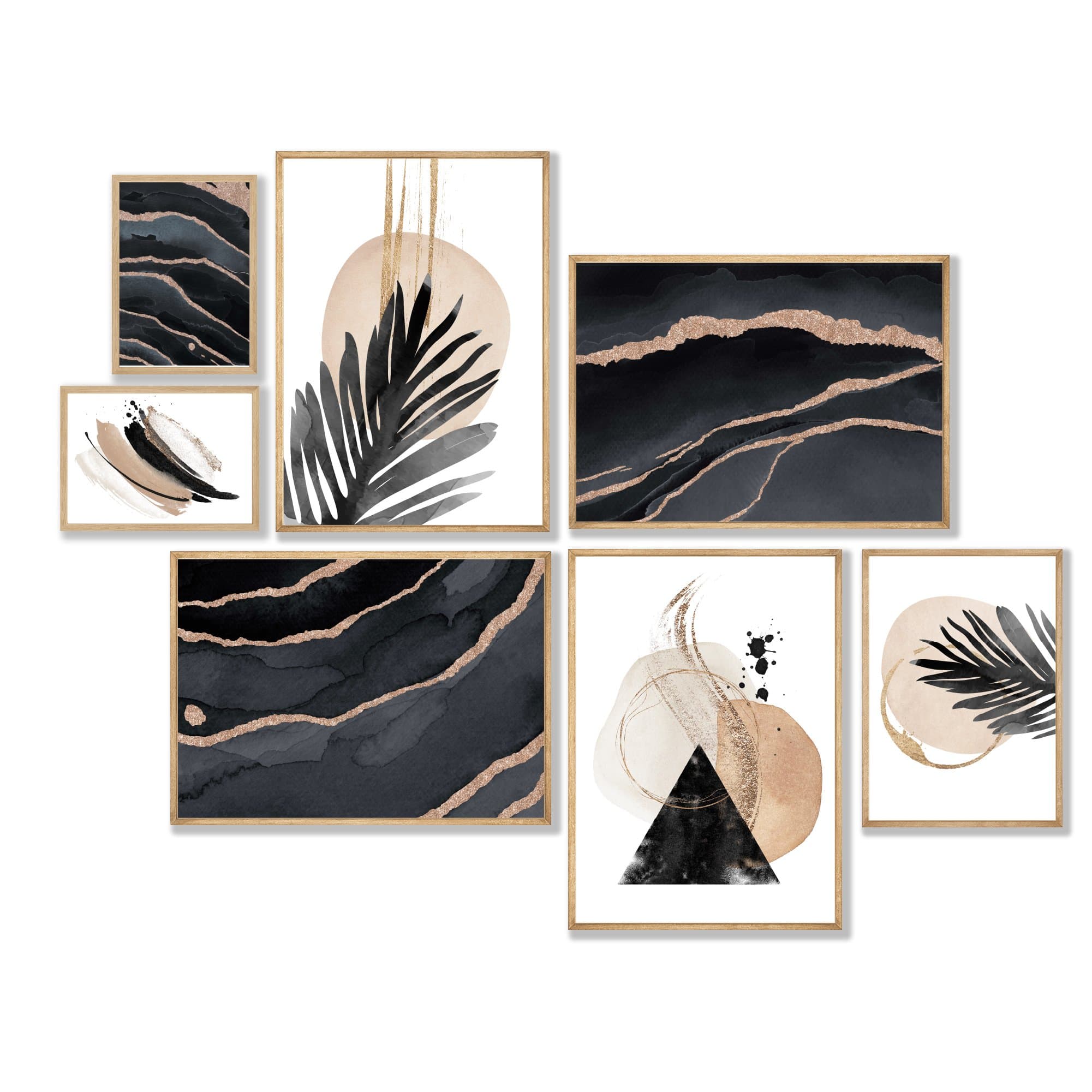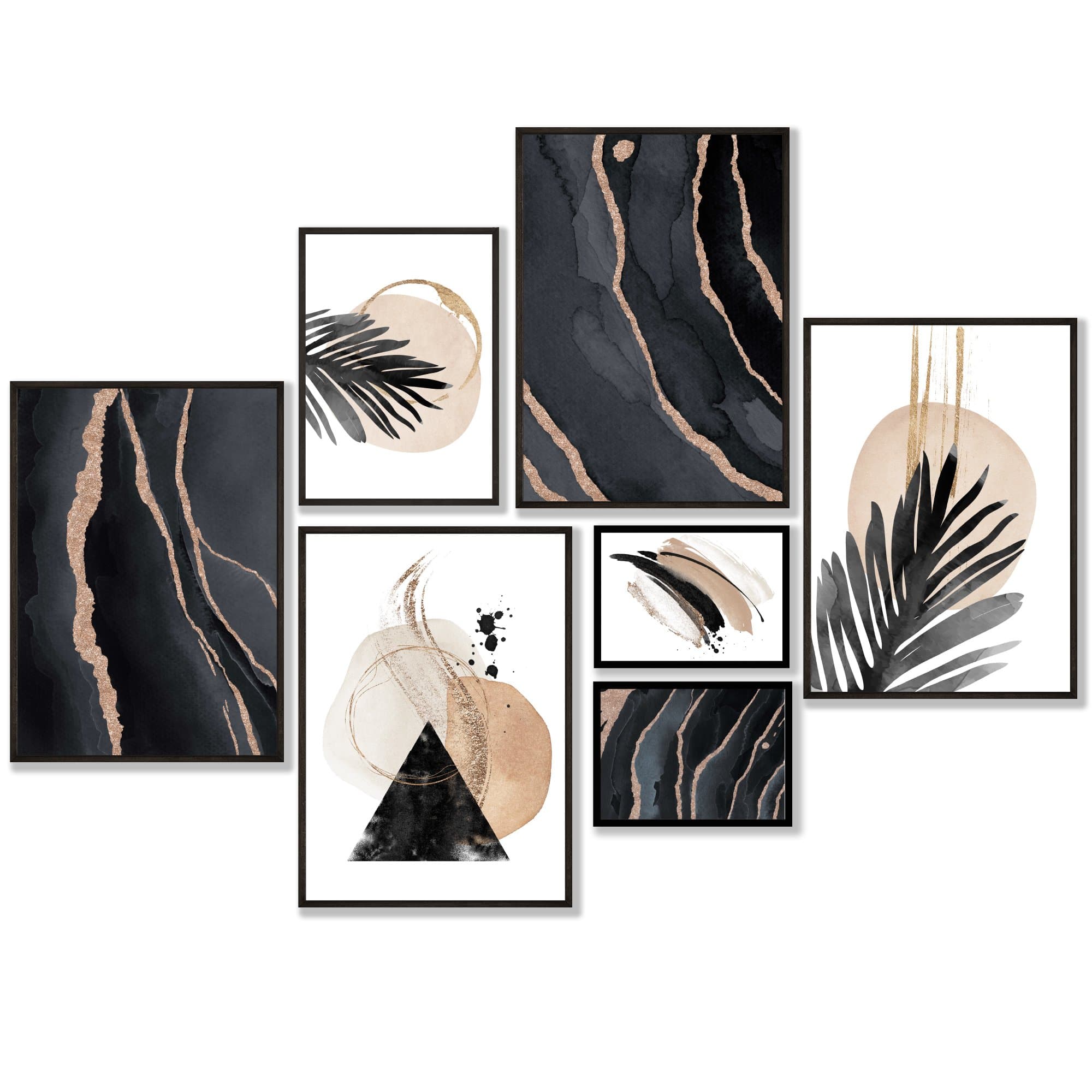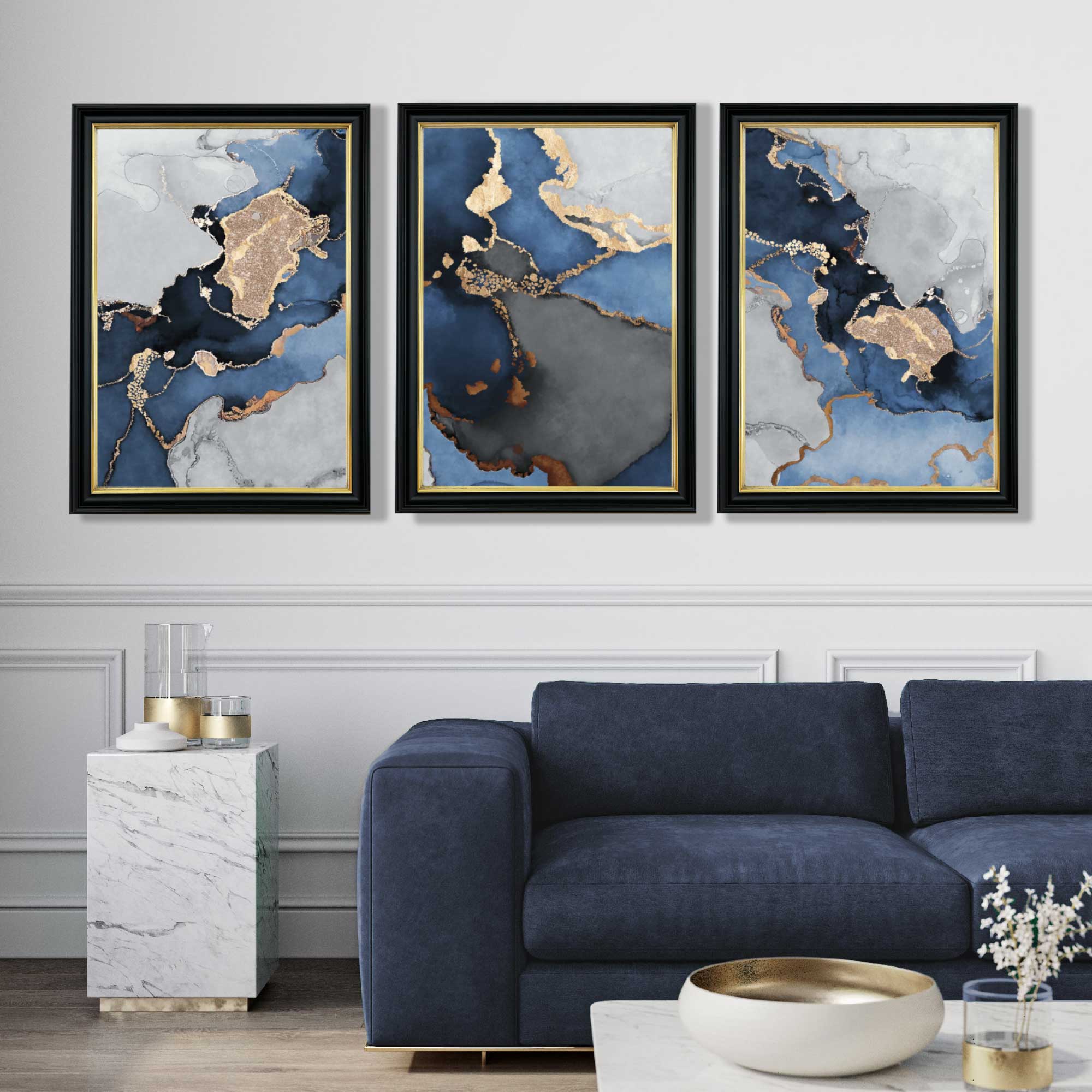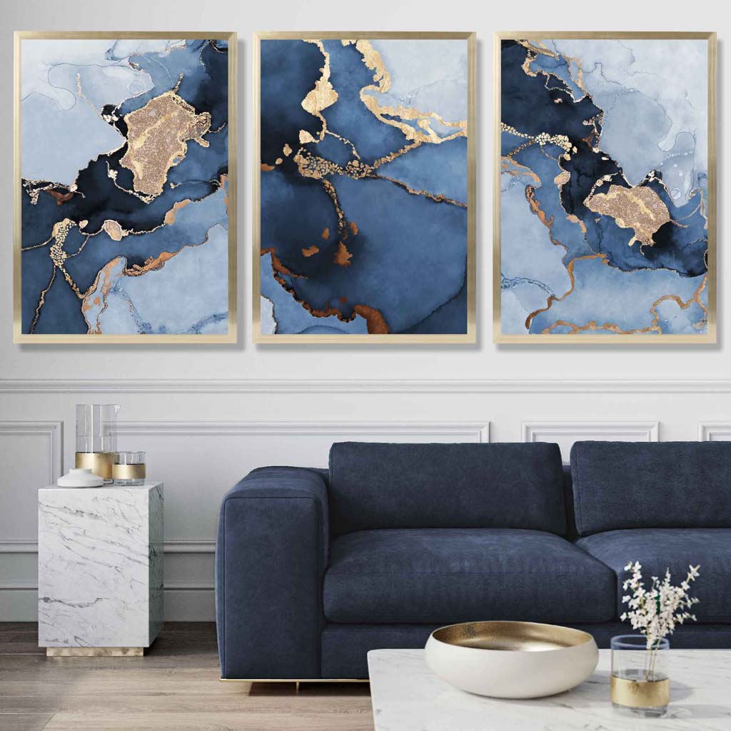 Set of 6 Abstract Blue and Beige Gallery Wall
