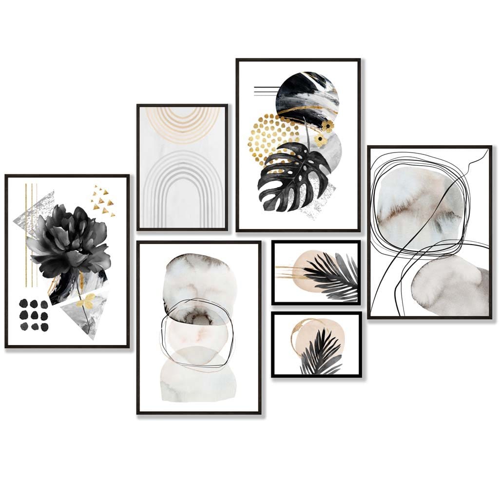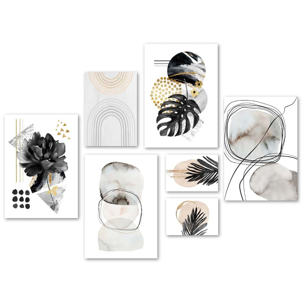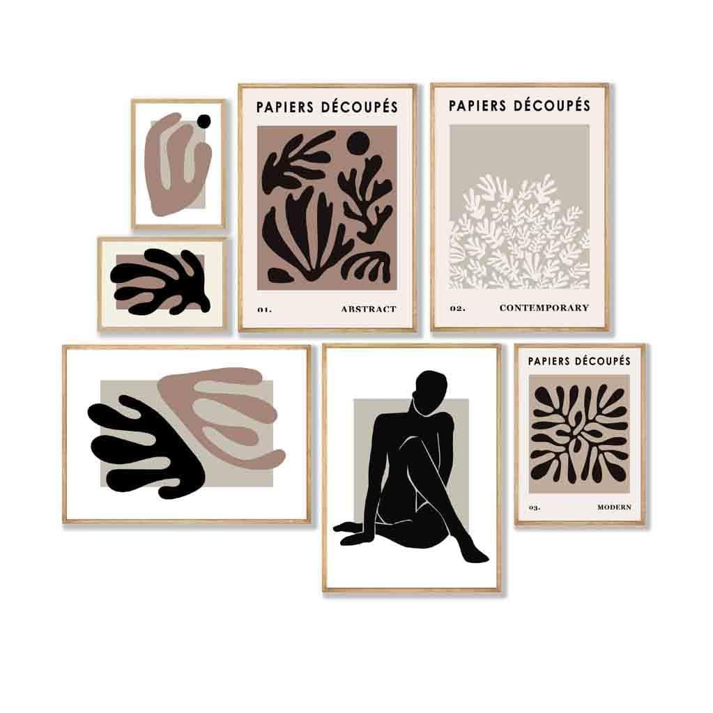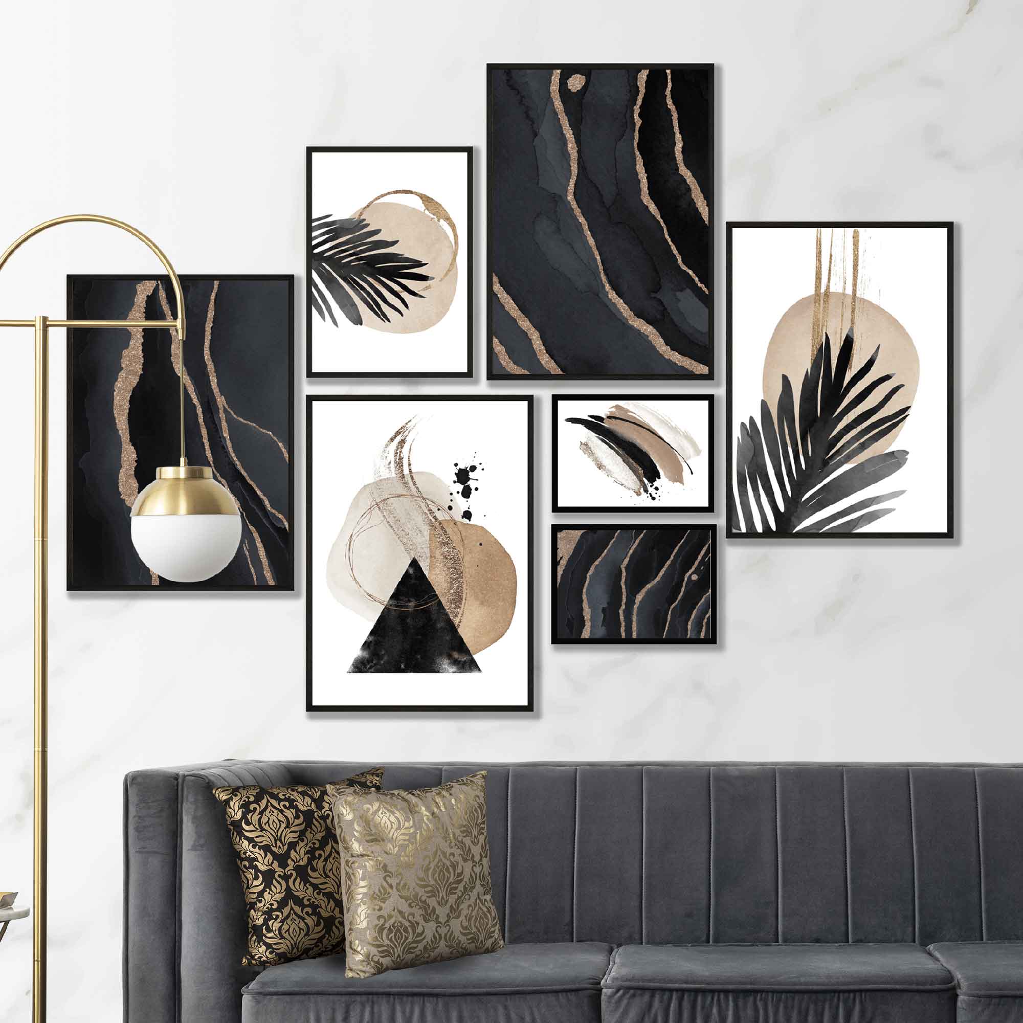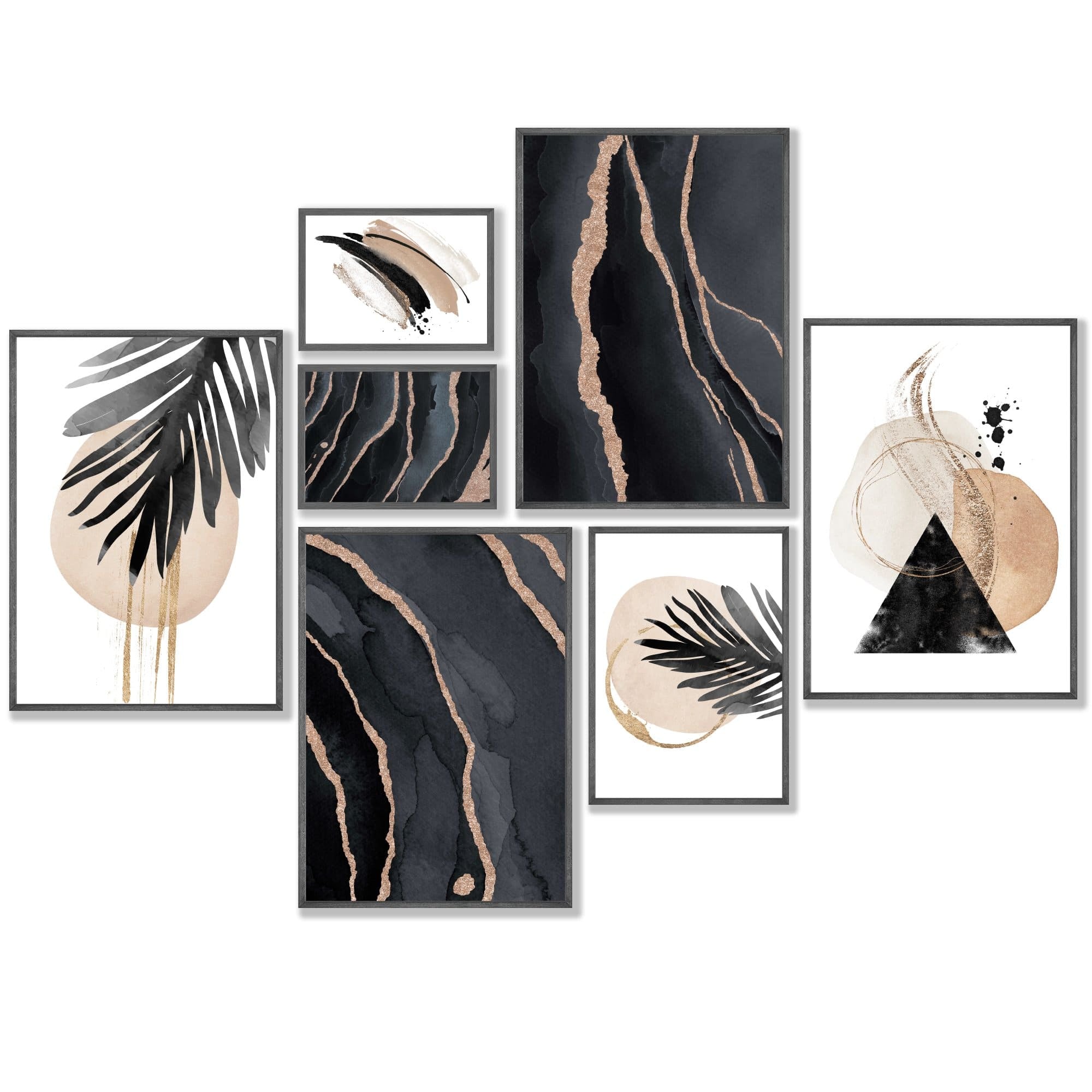 Set of 6 Abstract Blue and Beige Gallery Wall