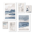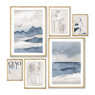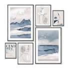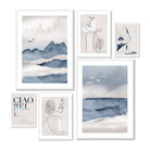 Set of 6 Abstract Blue and Beige Gallery Wall Art Prints
