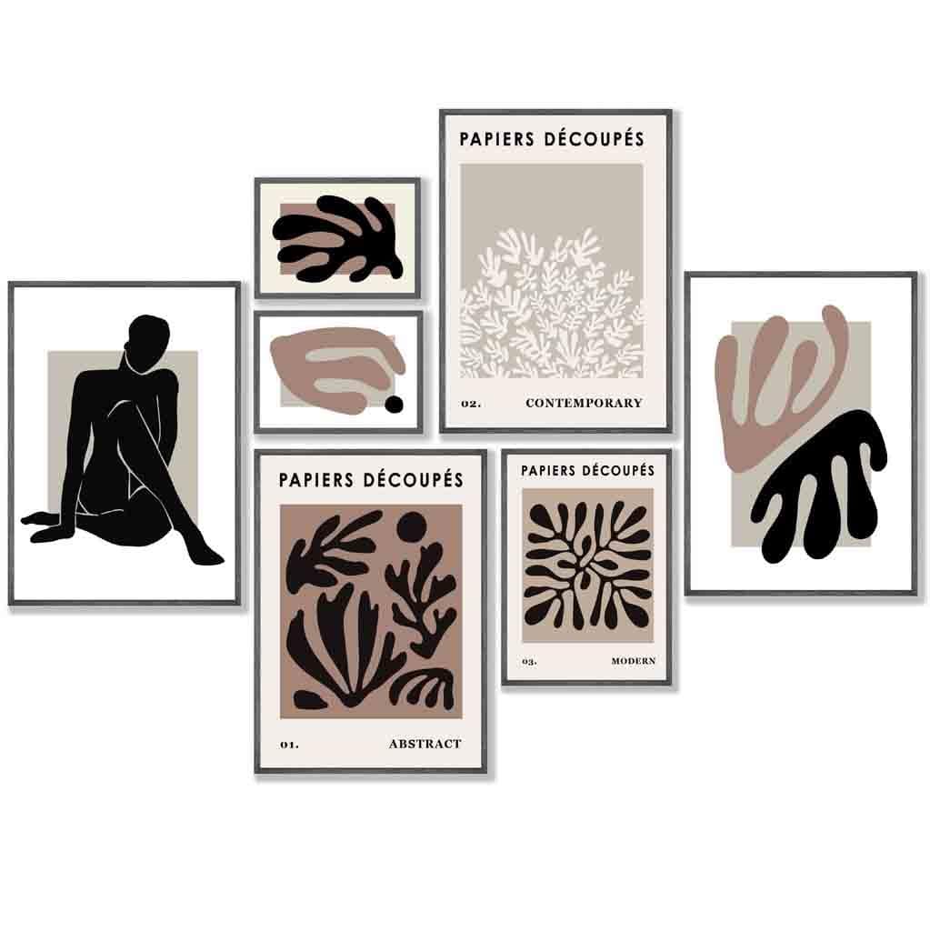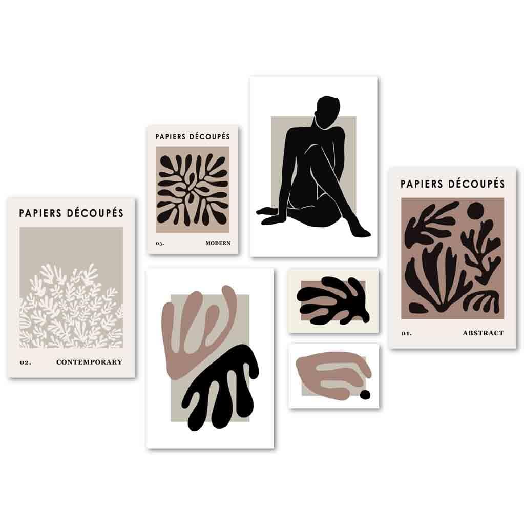 Set of 7 Brown Black and Beige Gallery Wall Art Prints