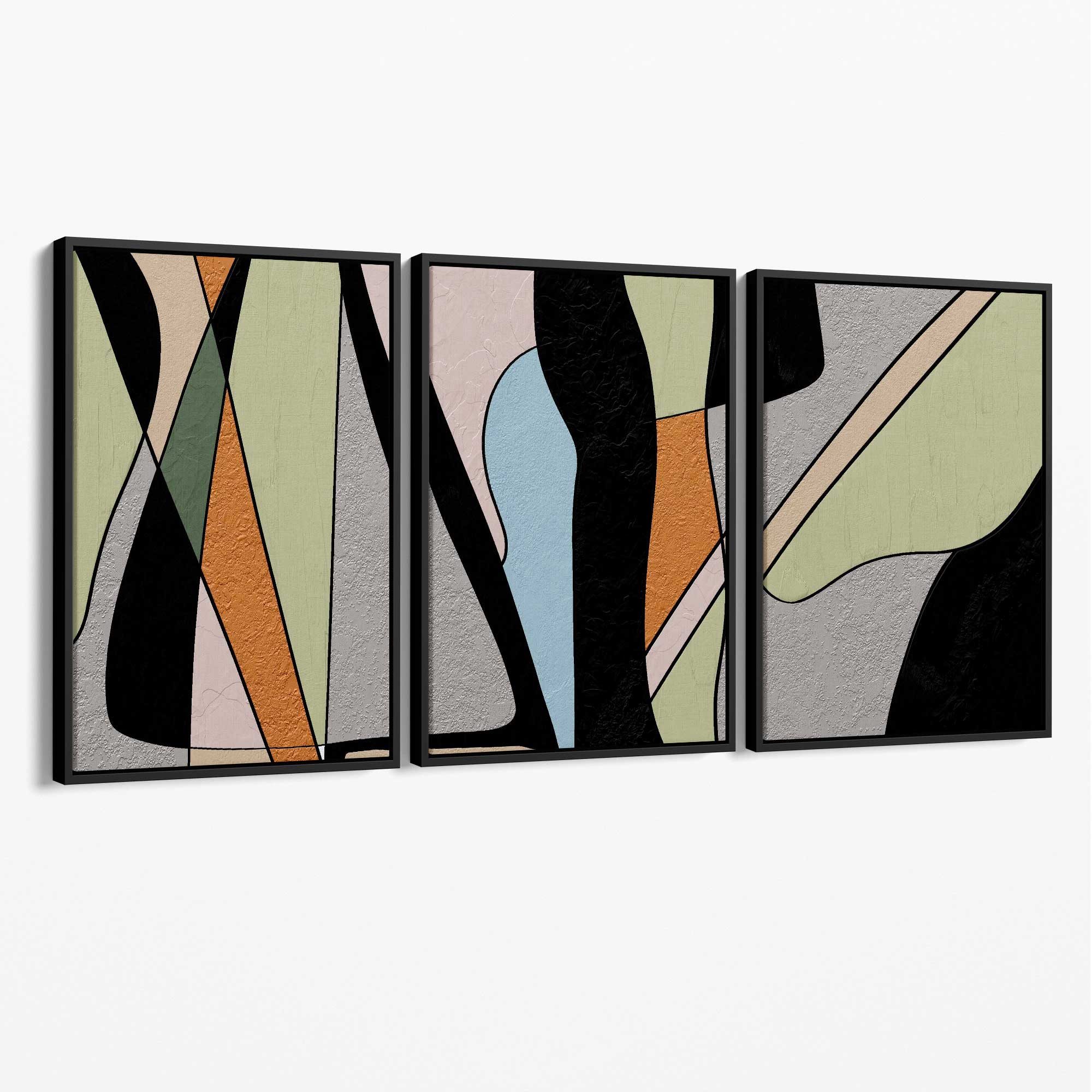 Set of 3 Abstract Black and Green Geometry Canvas Art Prints