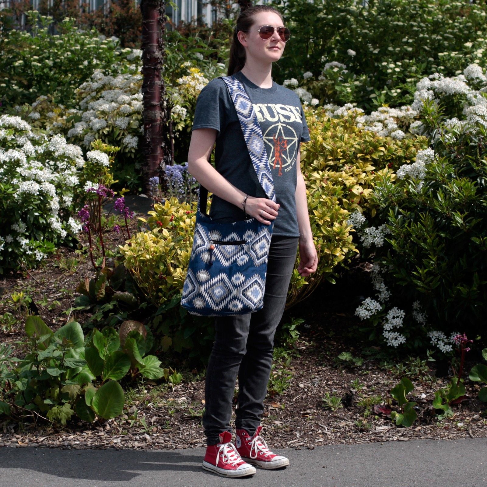 Tye-Dye Cotton Bag - Compass - Blue - Natural Handle