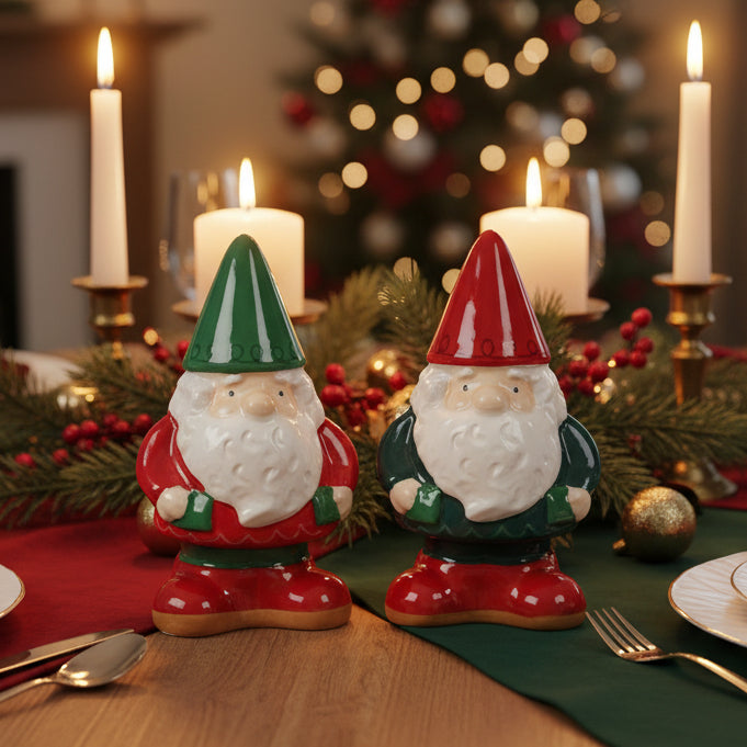 Add a sprinkle of joy to your dining table with this gnome salt and pepper set. These charming little fellows bring a touch of magic to every mealtime with their playful presence. Perfect for anyone who wants to fill their home with unique pieces.