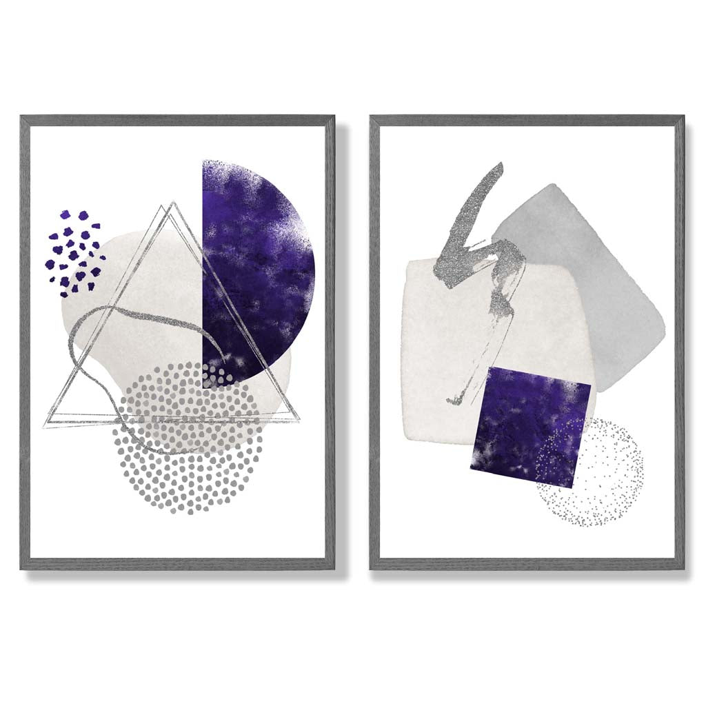 Purple Abstract Watercolour Framed Set of 2 Art Prints
