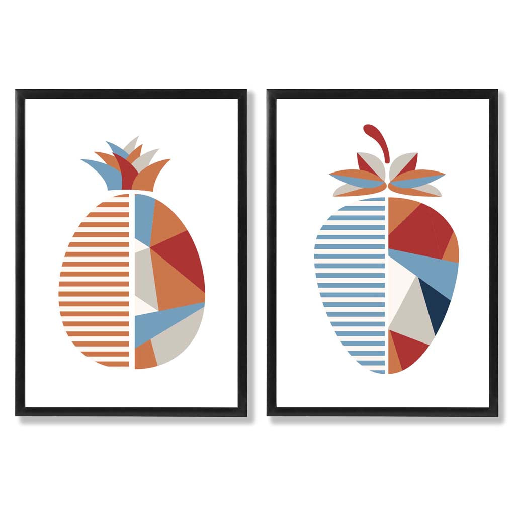 Experience the vibrant colours and bold geometry of our Blue and Orange Geometric Strawberry and Pineapple Fruit Art Prints. With this set of 2 prints, you can add a delicious touch of style to your home.