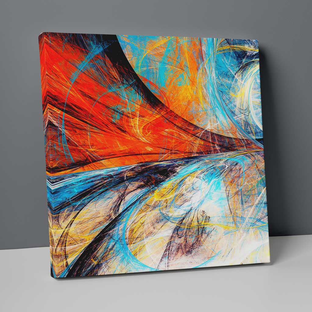Part of our Abstract Fractals Collection on Canvas featuring Shades of Bright Blue, Yellow, Red and Orange. Mix and match to create your own perfect gallery wall.