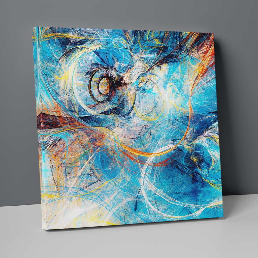 Part of our Abstract Fractals Collection on Canvas featuring Shades of Bright Blue, Yellow Red and Orange. Mix and match to create your own perfect gallery wall.