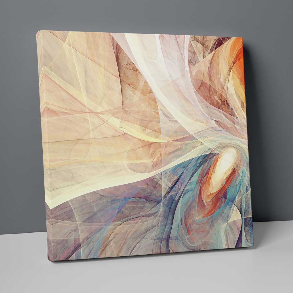 Part of our Abstract Fractals Collection on Canvas featuring Shades of Cream Orange and Blue. Mix and match to create your own perfect gallery wall.