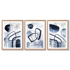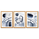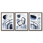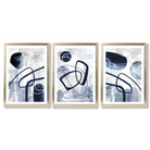 Abstract Navy Blue Shapes Set of 3 Framed Wall Art Prints