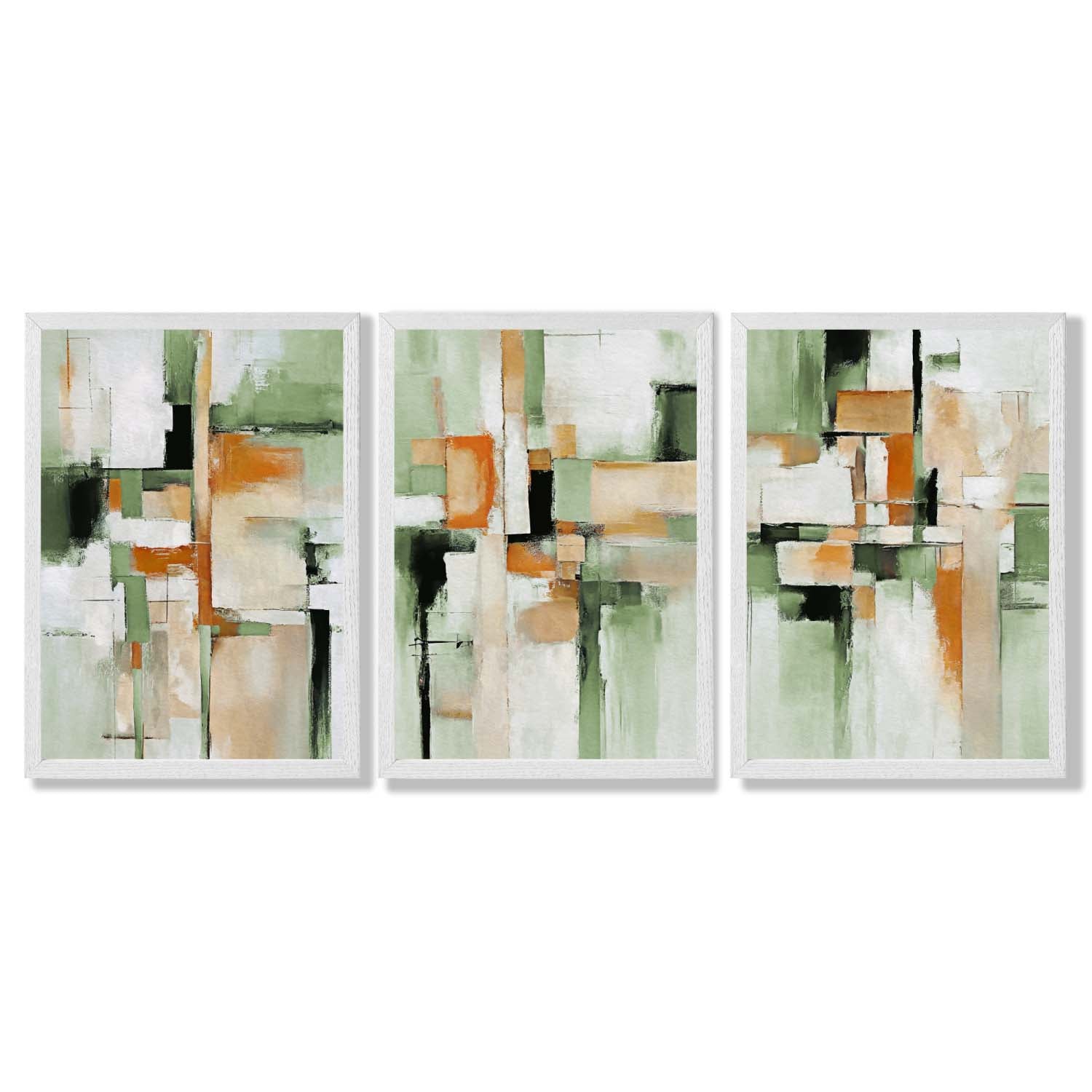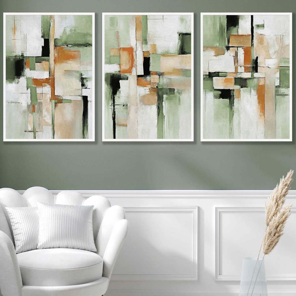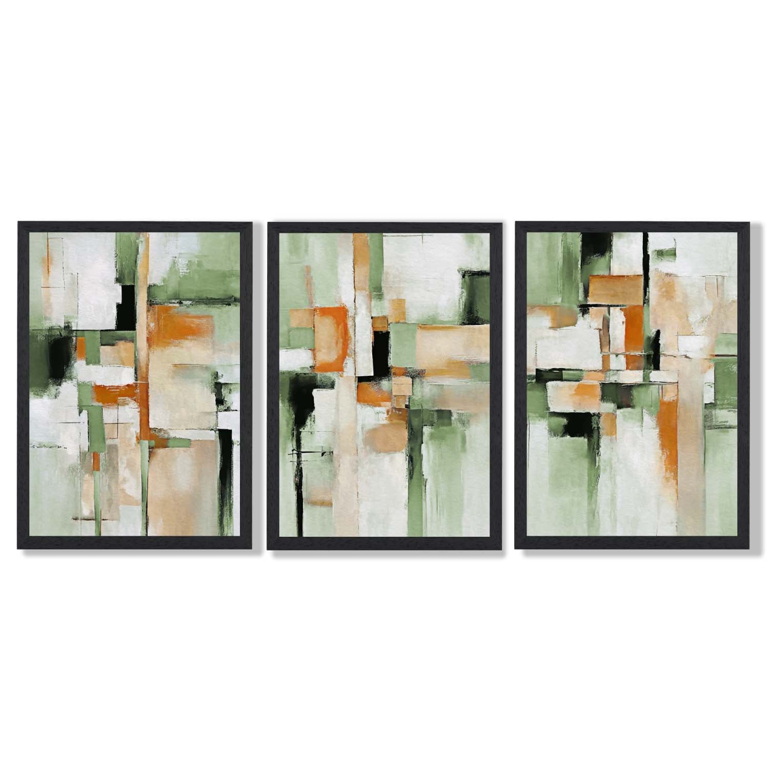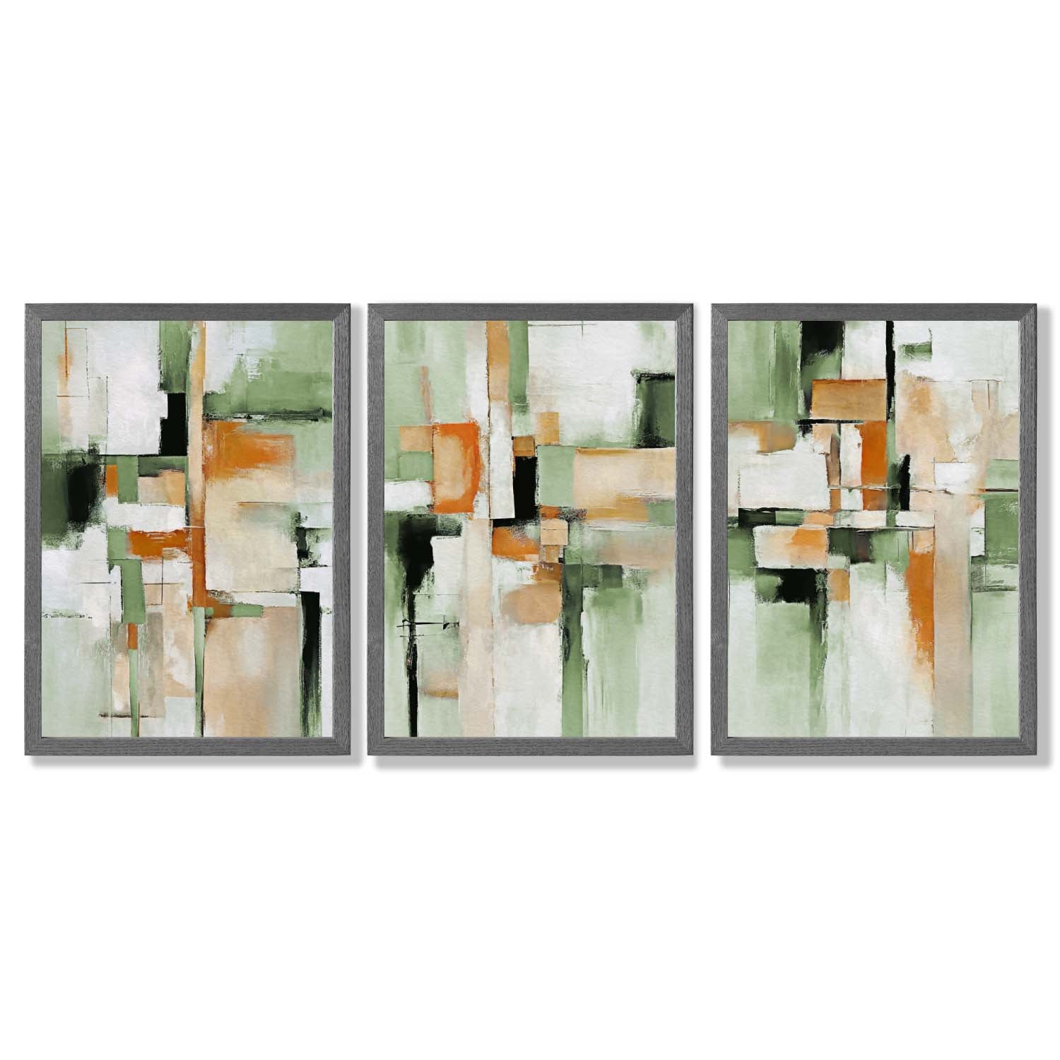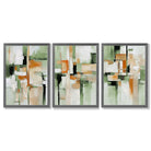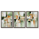 Abstract Sage Green and Orange Set of 3 Framed Wall Art