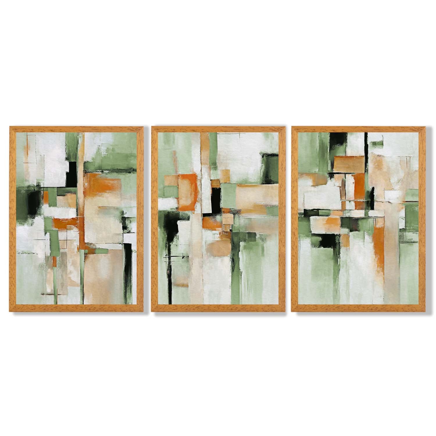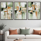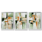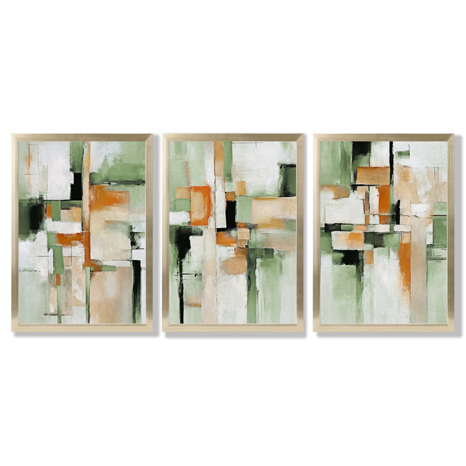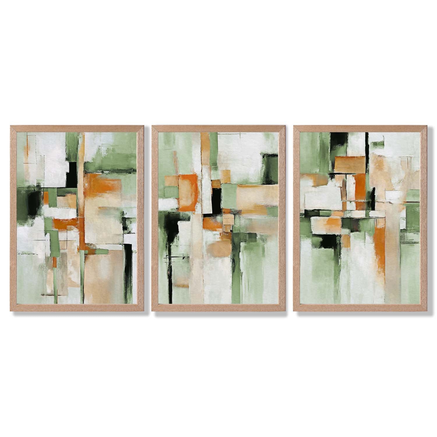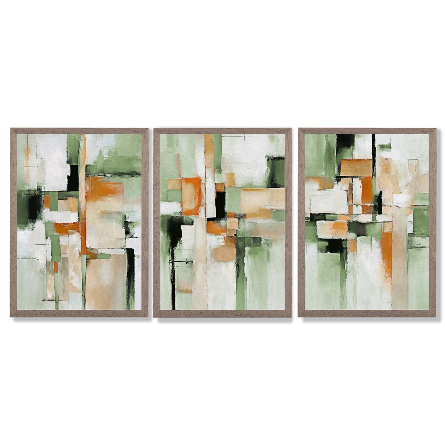Abstract Sage Green and Orange Set of 3 Framed Wall Art
