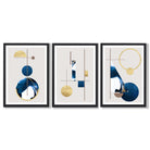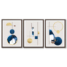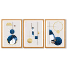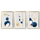 Abstract Set of 3 Textured Geometric Framed Prints in Navy Blue and Gold