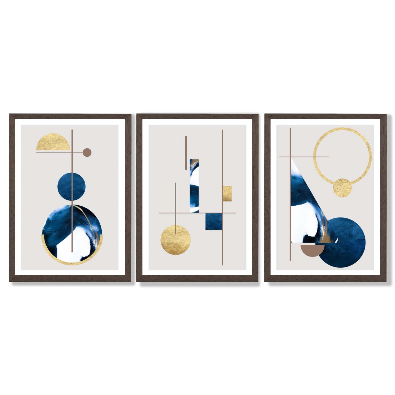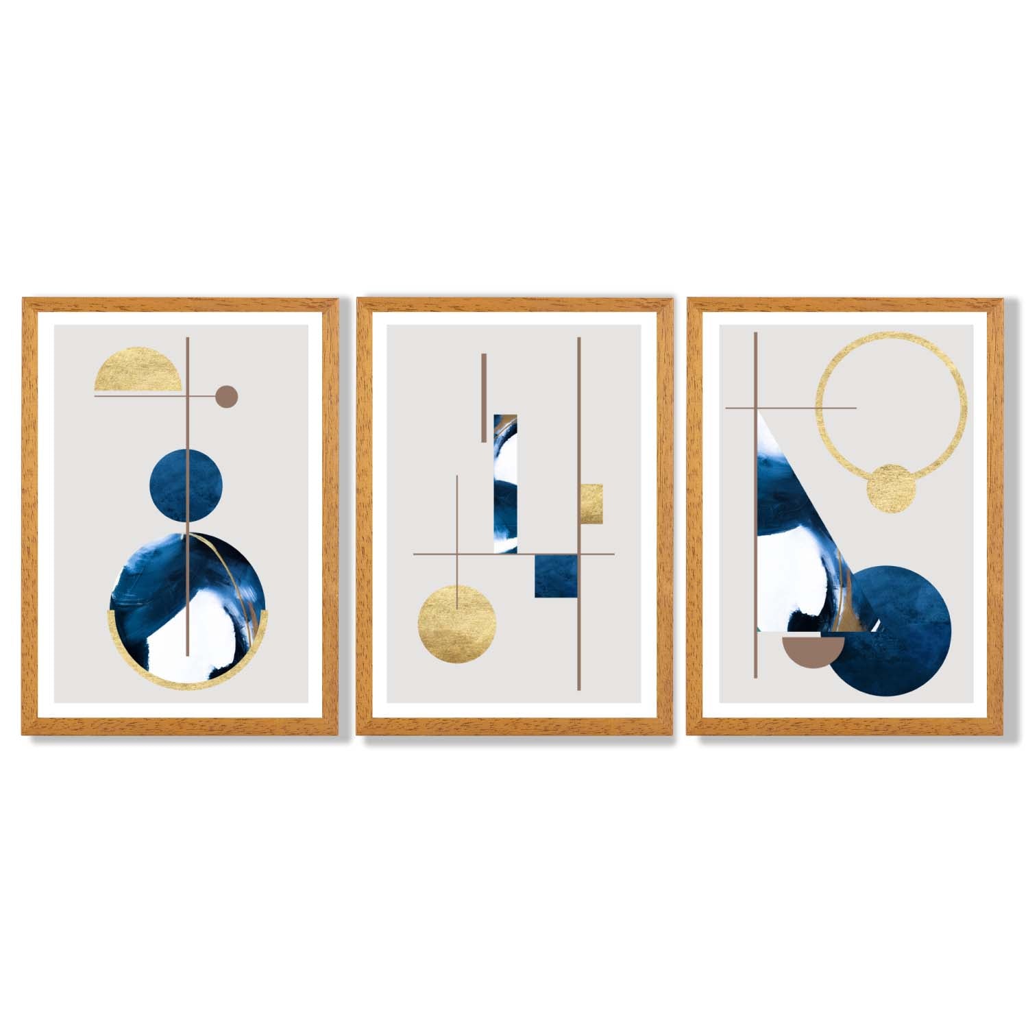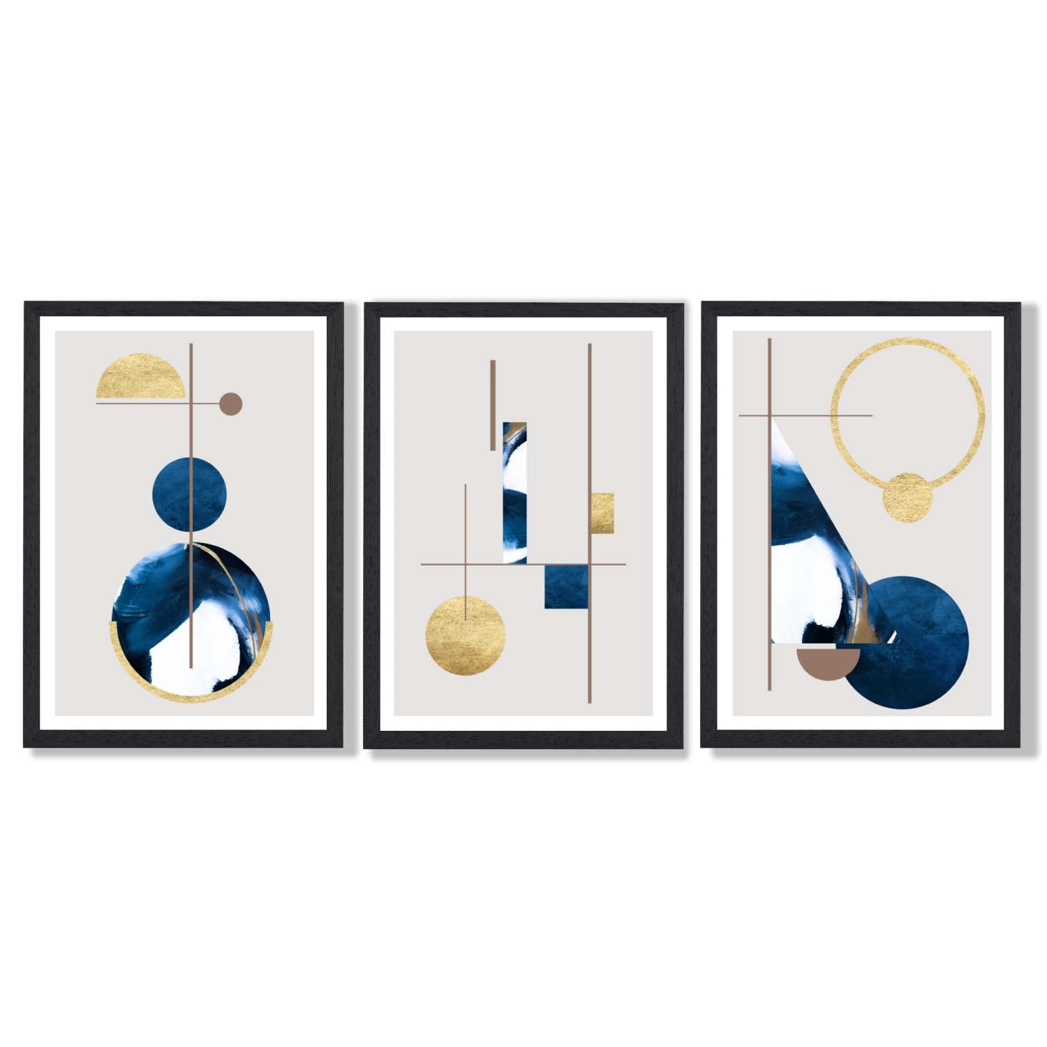 Transform your walls with our mesmerizing Abstract Set of 3 Textured Geometric Framed Prints, featuring a stunning combination of navy blue and gold. Experience the power of textures and geometric shapes in captivating frames, and elevate your space with this unique set.