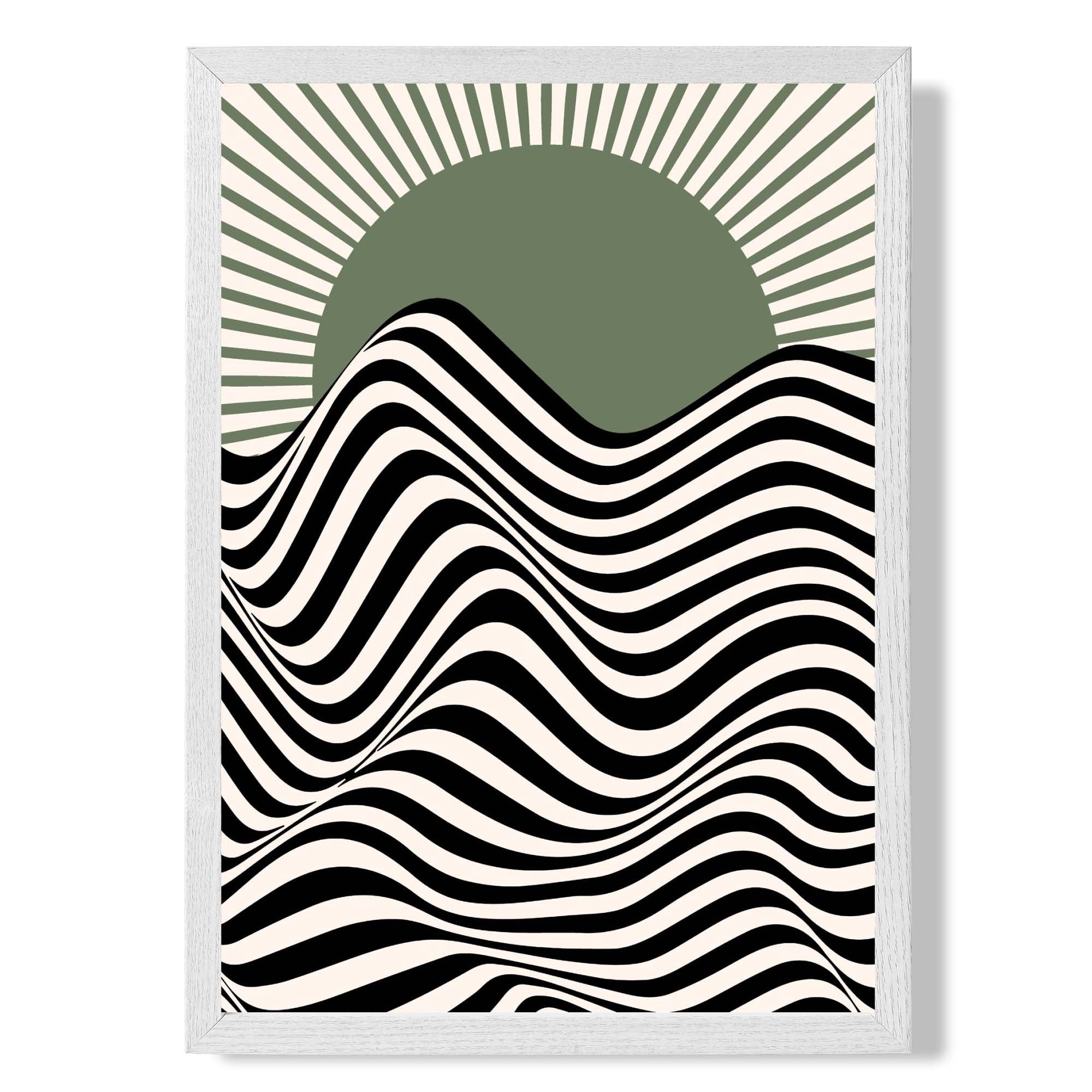 Brighten your space with the Bauhaus Sun Burst Waves in Green Art Print. Featuring dynamic wave patterns radiating like sunbursts in vibrant green tones, this artwork captures the energy and balance of Bauhaus design. Perfect for adding a lively and modern focal point, it brings warmth and movement to any room. Elevate your décor with this striking piece that blends classic style with contemporary flair.