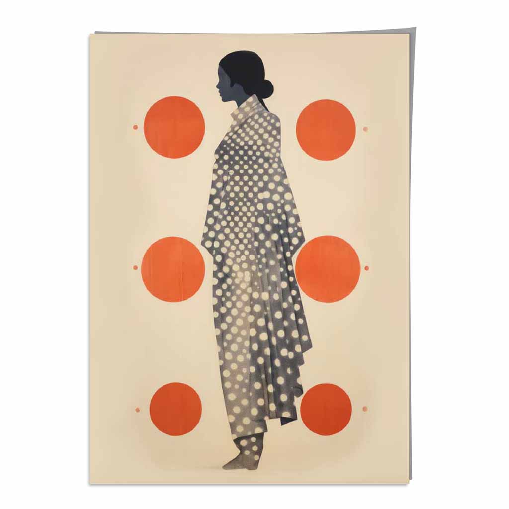Elevate your style with this stunning Beige, Black & Orange Retro Fashion Illustration Print. The neutral tones combined with a pop of bold color create a fashion-forward statement piece. Perfect for adding a touch of creativity and sophistication to any room. Make a statement with this elegant print.