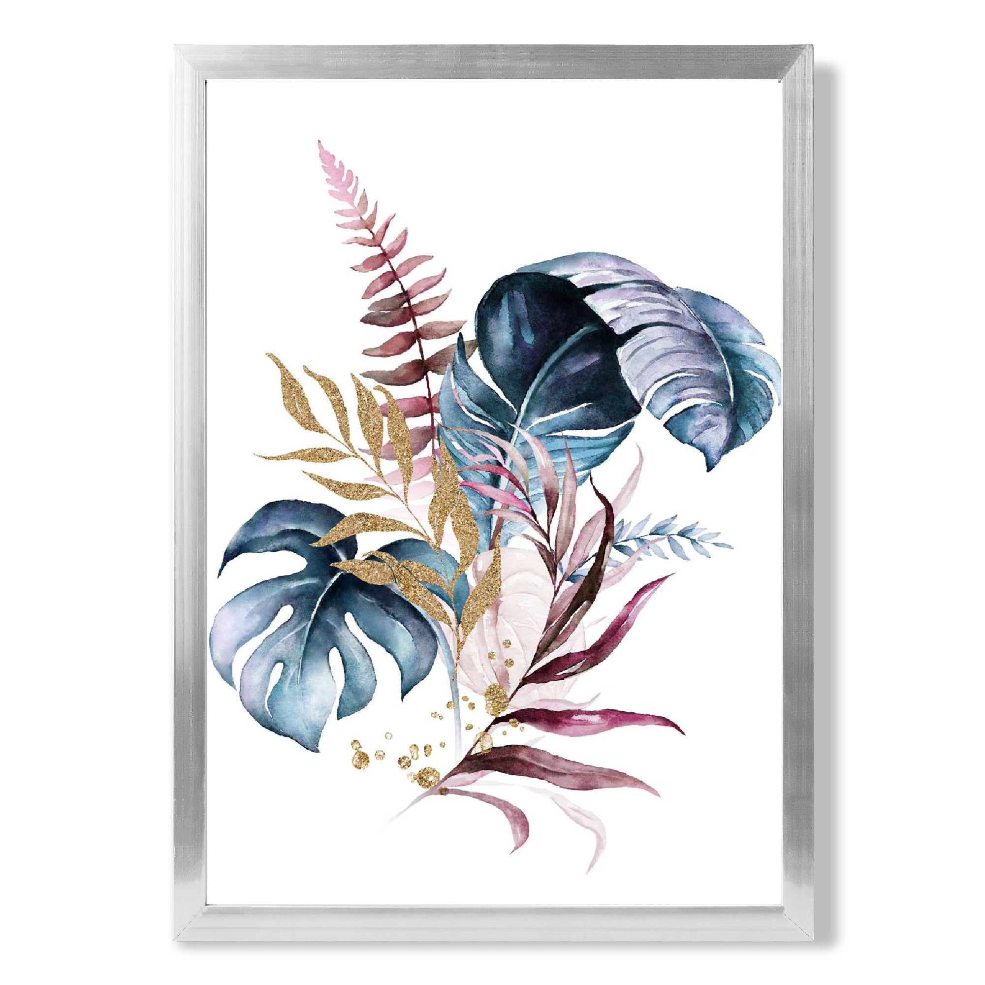 Botanical Pink and Blue Leaves No 1 Framed Print