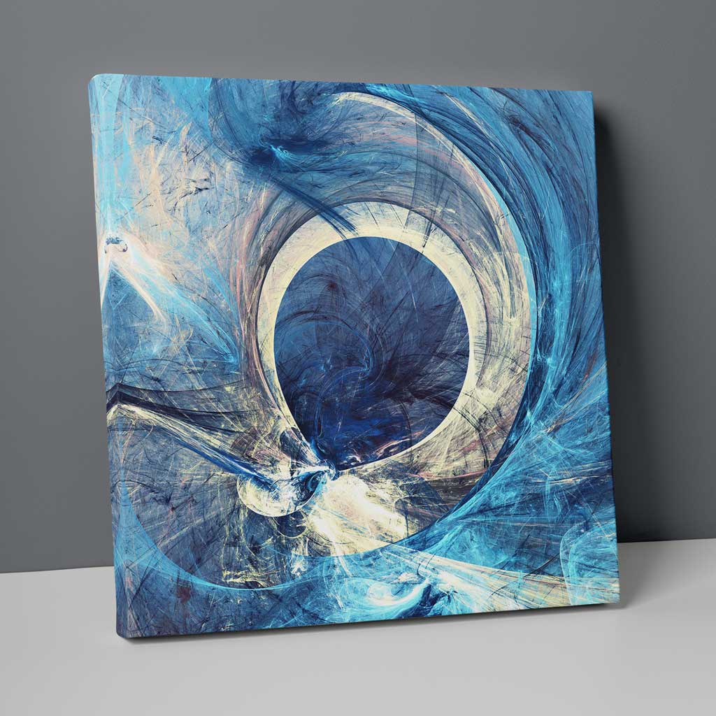 Part of our Abstract Fractals Collection on Canvas featuring Shades of Blue, Navy, Aqua and Yellow. Mix and match to create your own perfect gallery wall.