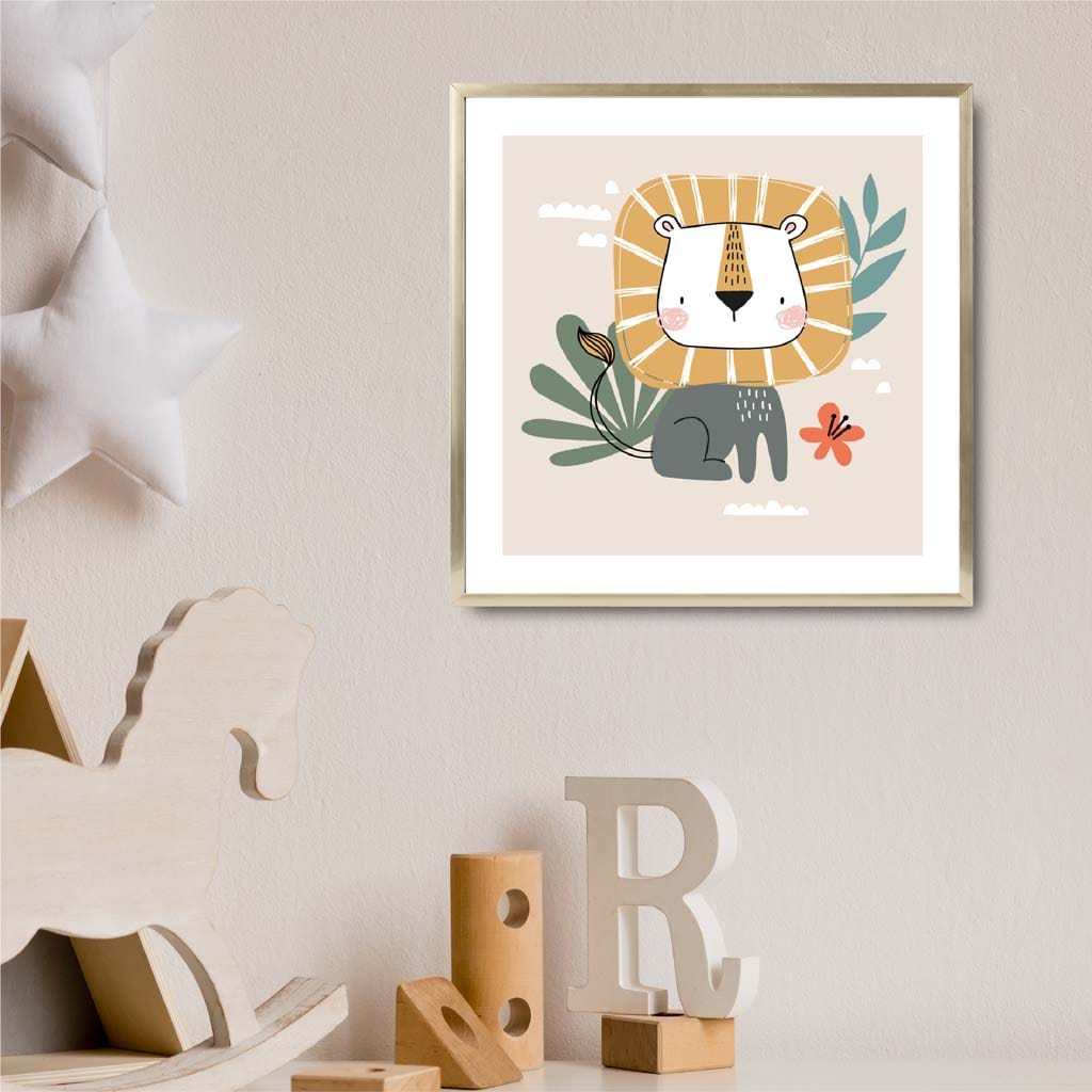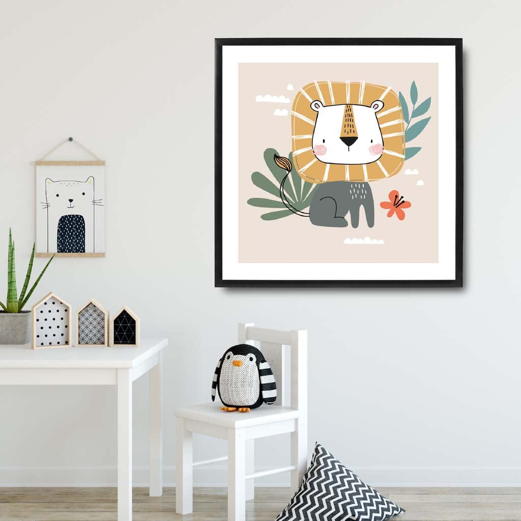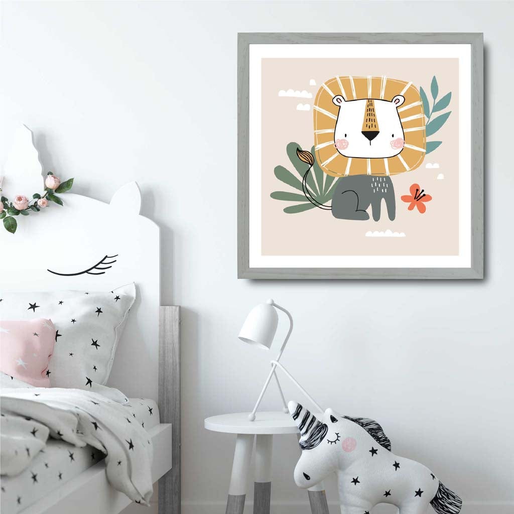 Introduce your little ones to the wild with our Cute Lion FRAMED Print on Beige Jungle Kids Wall Art. This playful and quirky framed print will add a touch of fun to any room, while helping your children learn about nature. Perfect for a nursery or playroom!