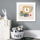 Cute Lion FRAMED Print on Beige Jungle Kids Wall Art