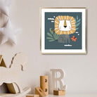 Cute Lion FRAMED Print on Teal Blue Jungle Kids Wall Art