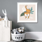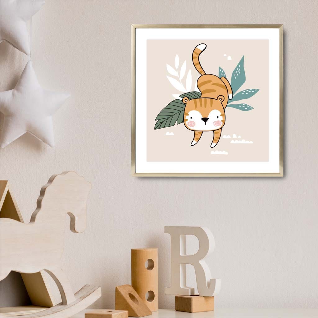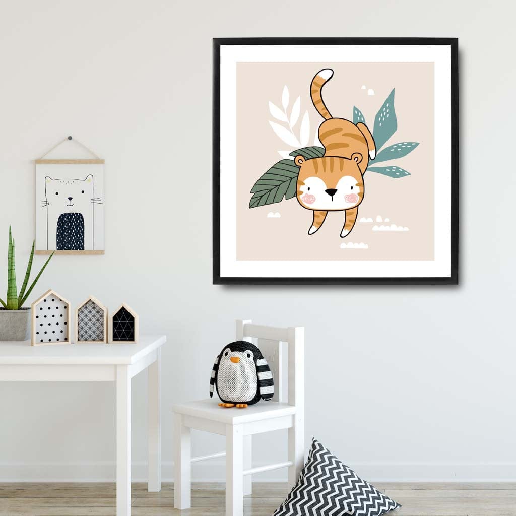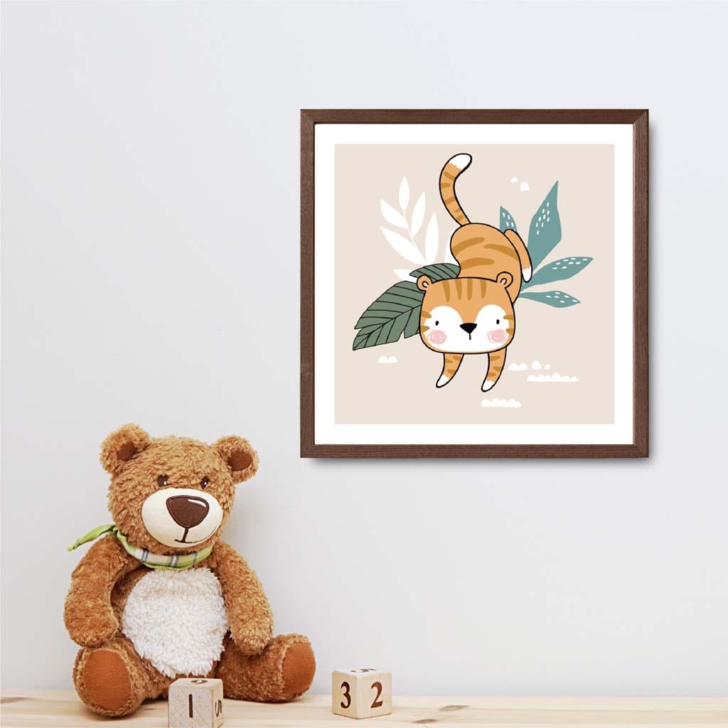 Cute Tiger FRAMED Print on Beige Jungle Kids Wall Art