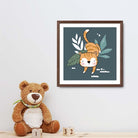Cute Tiger FRAMED Print on Teal Blue Jungle Kids Wall Art