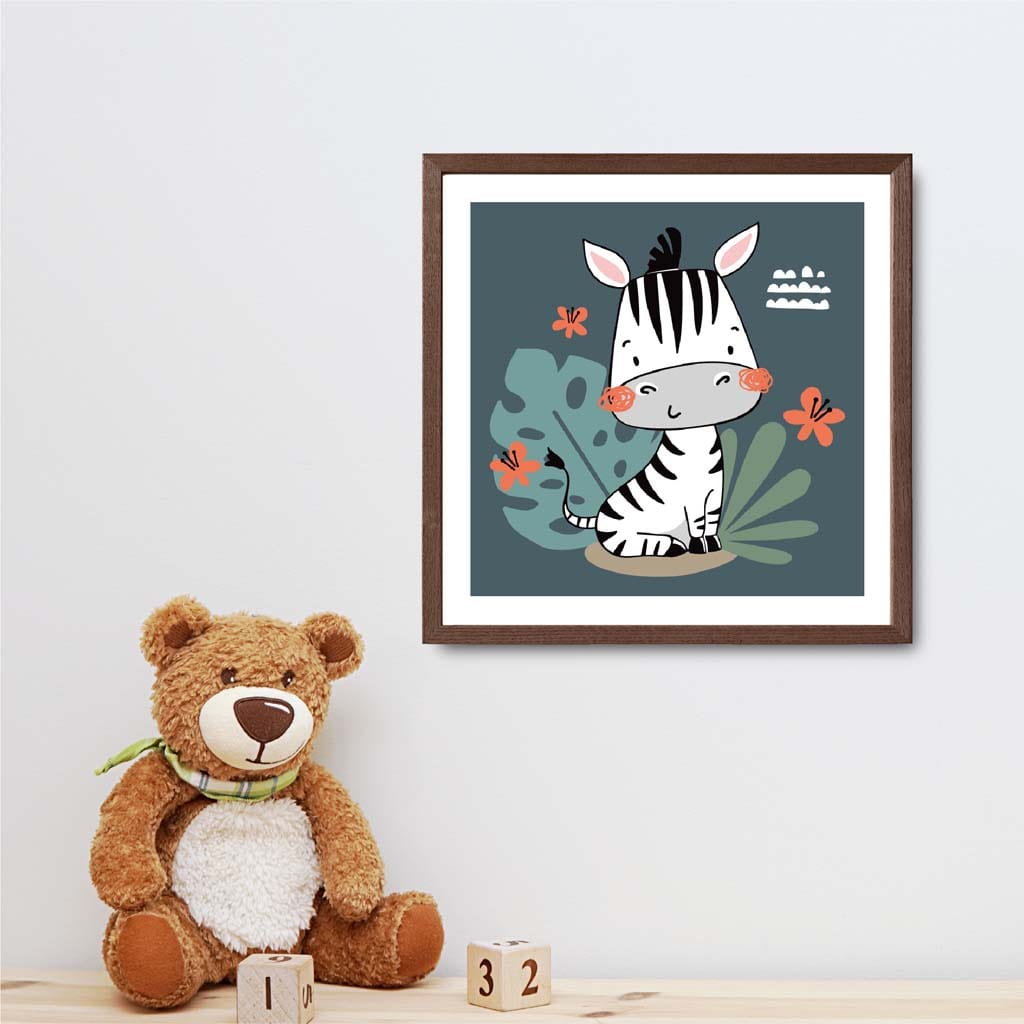 Liven up your child's space with this adorable Cute Zebra print on a vibrant teal blue background. Perfect for adding a touch of jungle fun to their room, this framed print will make them smile every time they see it. Hang it up today and watch their imagination grow!