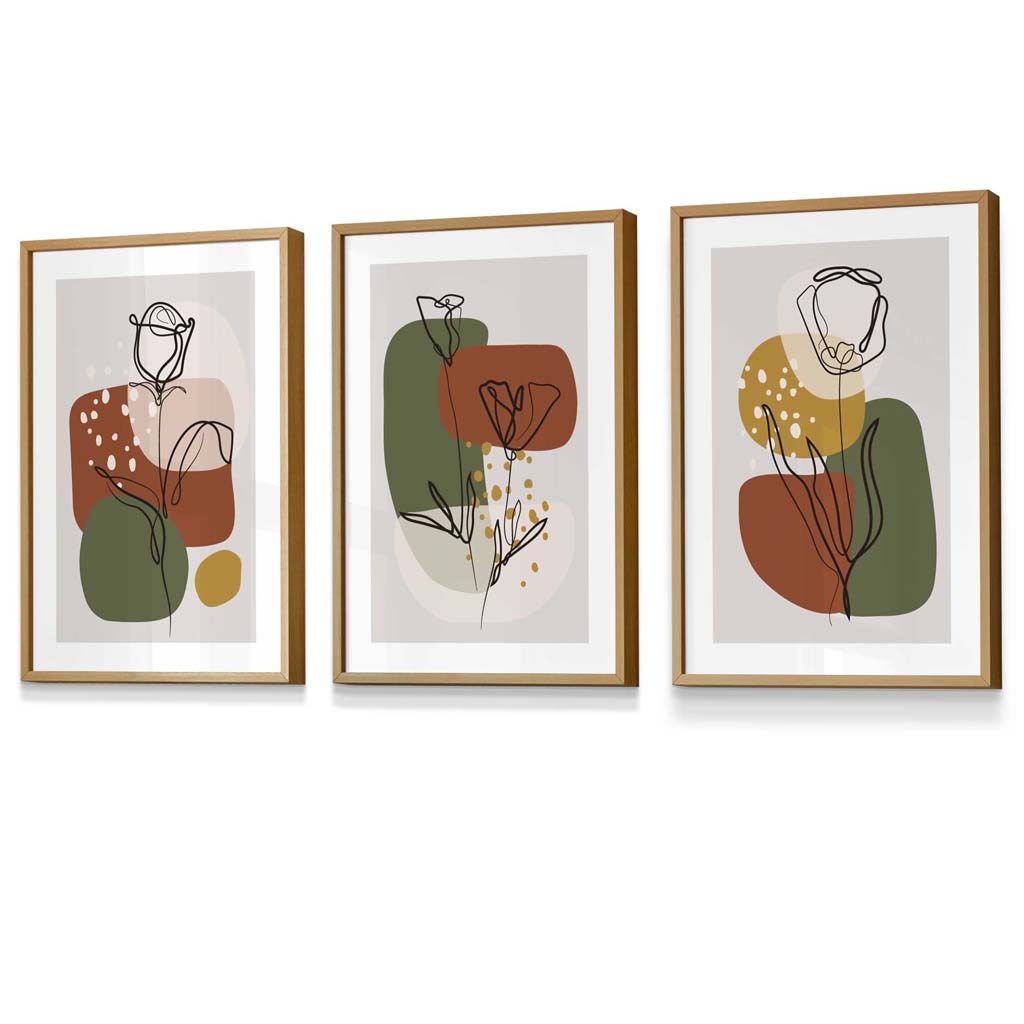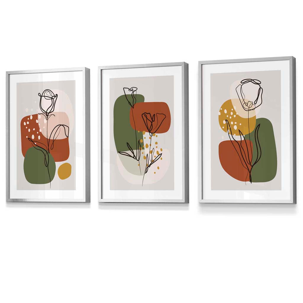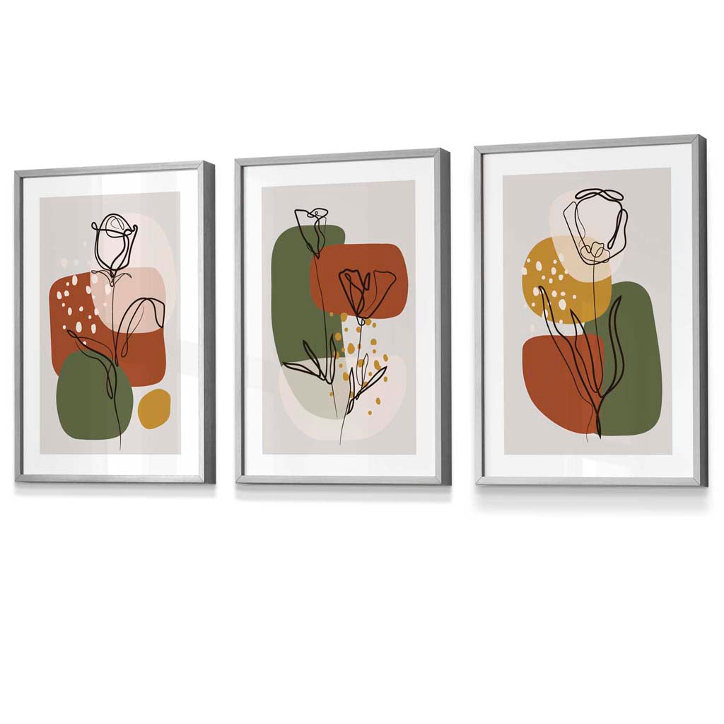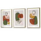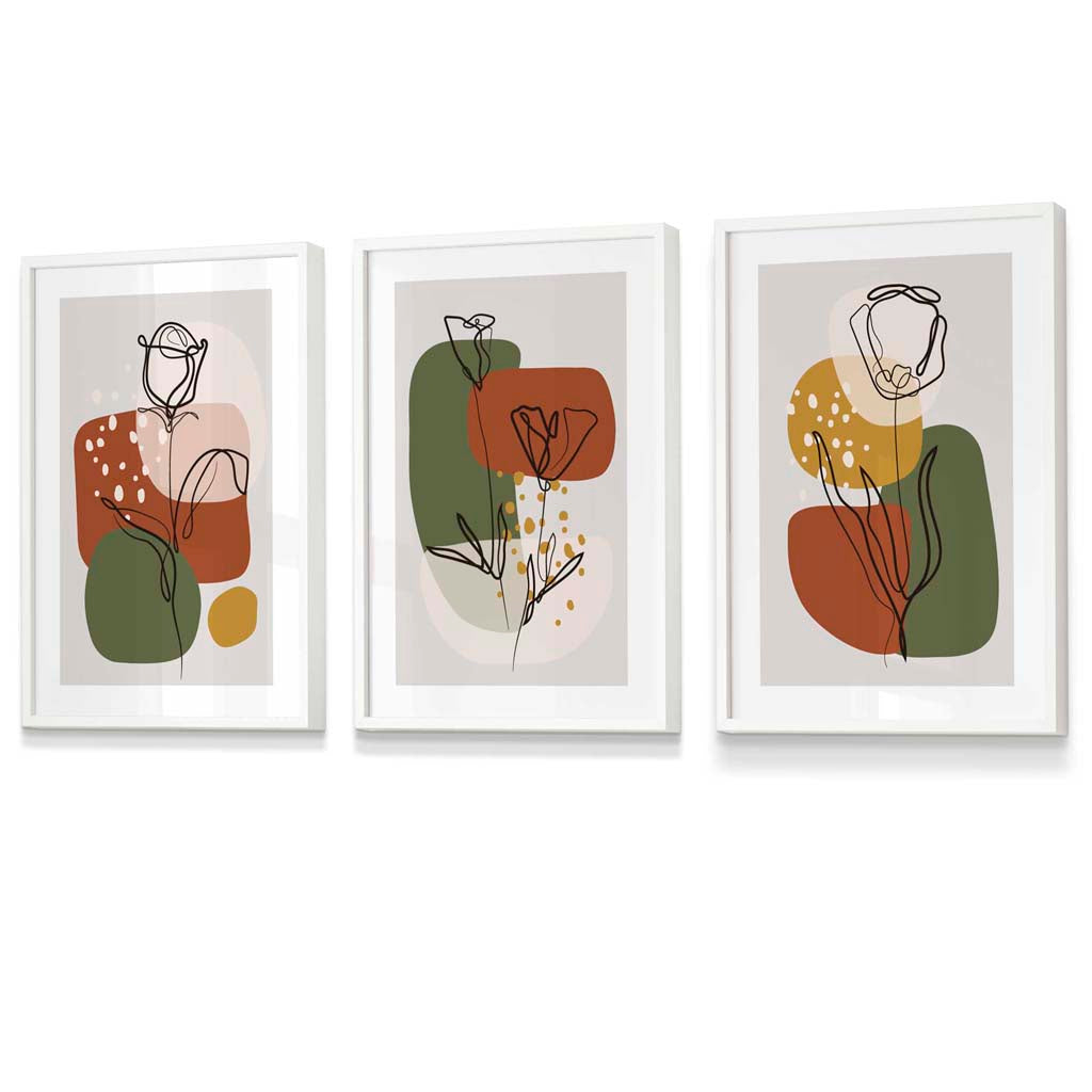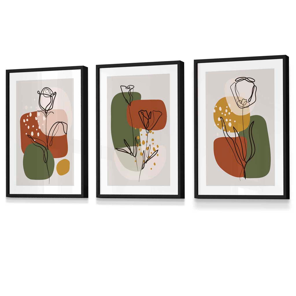 Floral Set of 3 Autumn Boho Framed Prints in Orange and Green