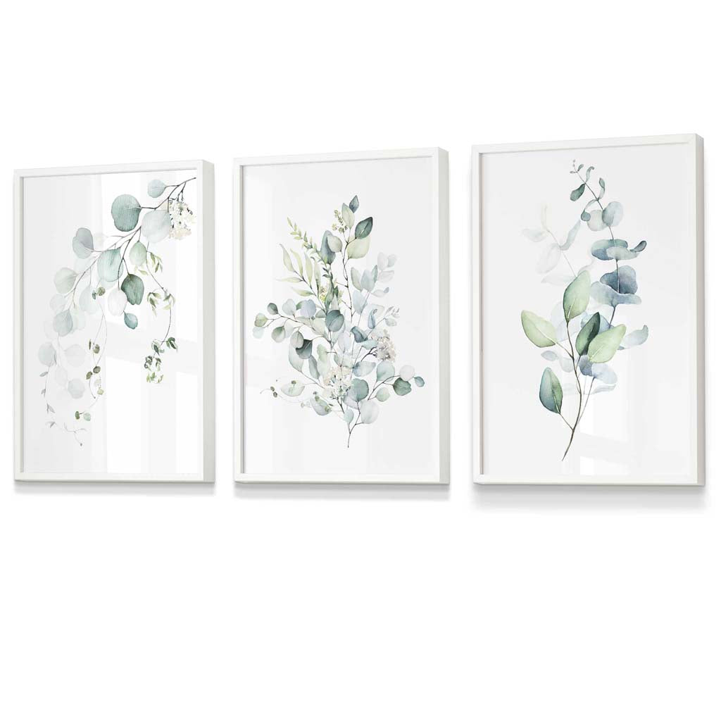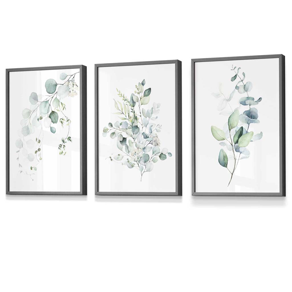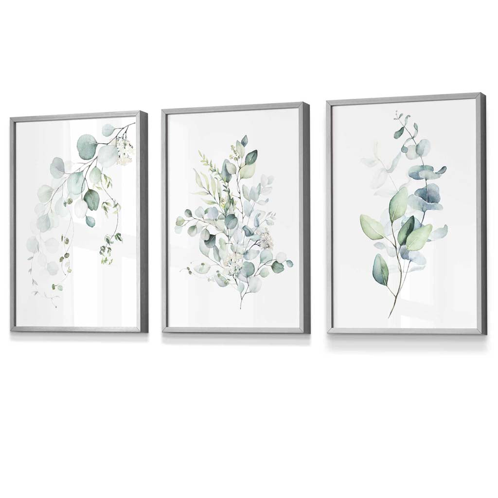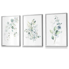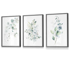 FLORAL Set of 3 Eucalyptus Blue Green Leaves Framed Prints
