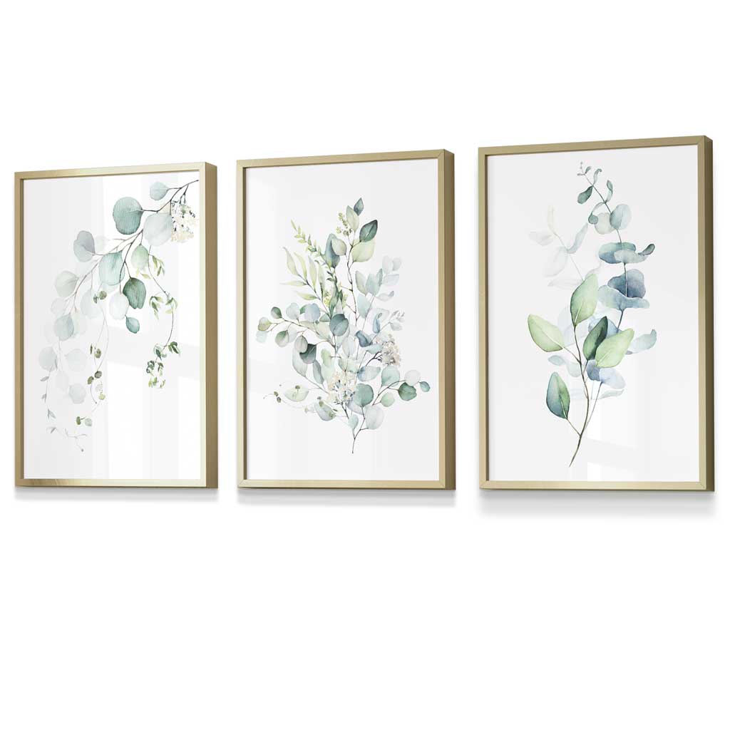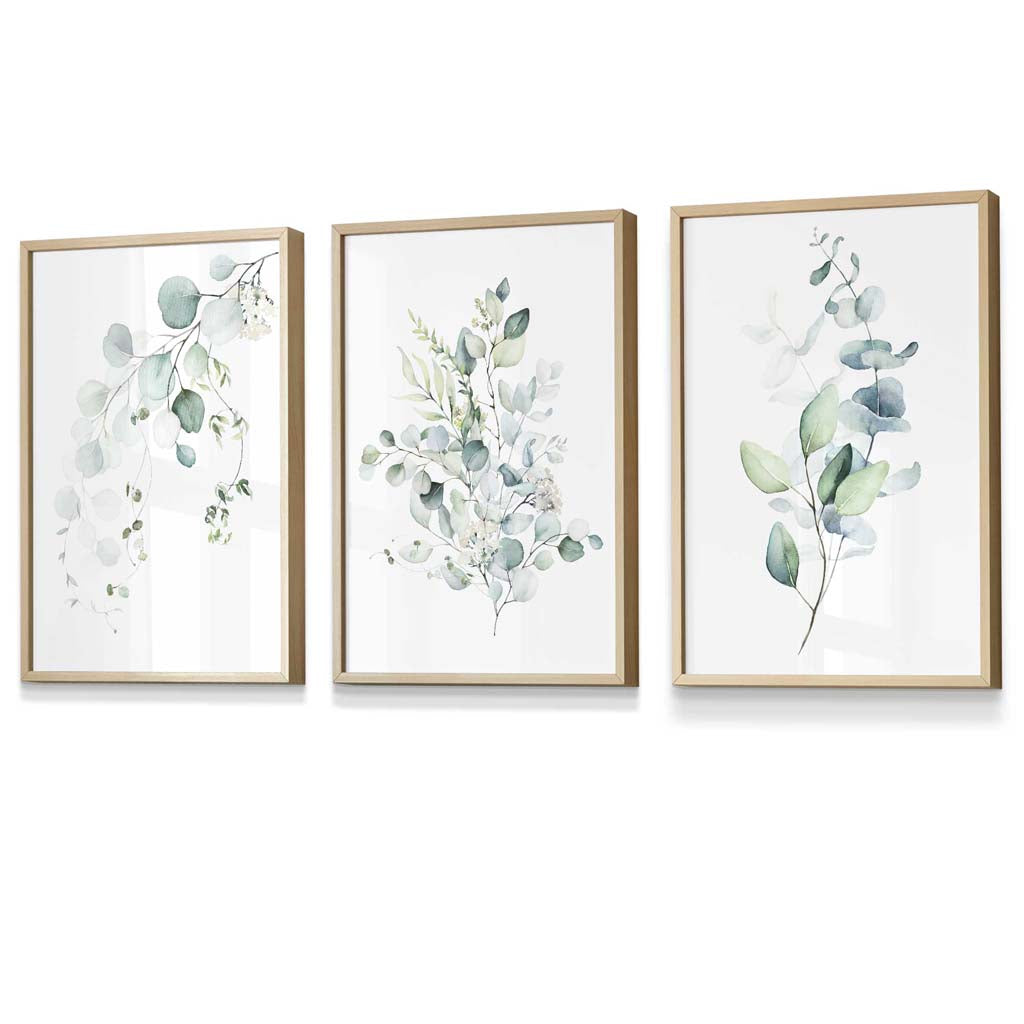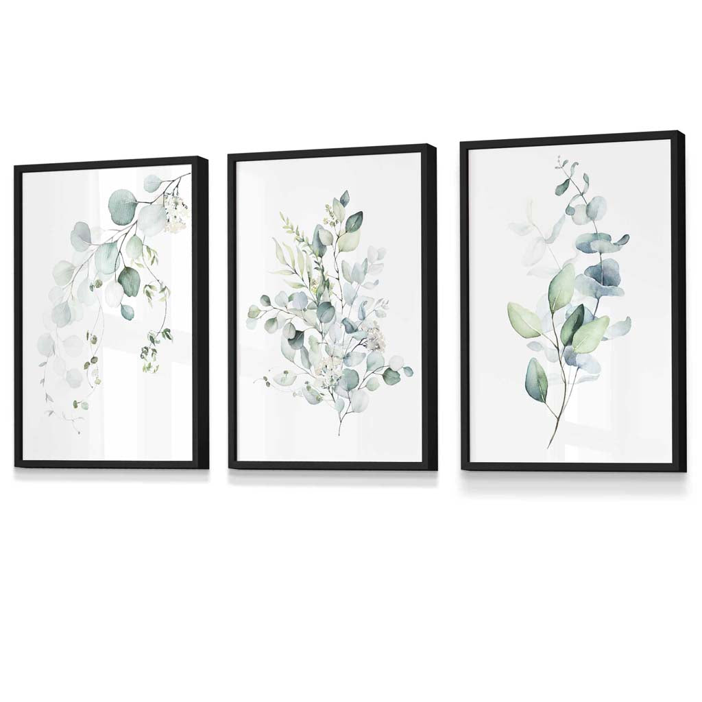 FLORAL Set of 3 Eucalyptus Blue Green Leaves Framed Prints