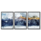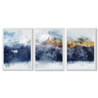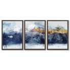 Part of our Abstract Watercolour Nature Series, this Set of 3 Framed Wall Art features Shades of Navy Blue and Yellow Alpine Mountains. These Wall Art Prints work with many interior styles including Boho, Modern and Minimalist. Hang these prints side by side to create an energising and captivating interior design. Instantly elevate any room in your home to a chic and sophisticated space.