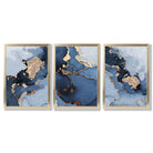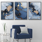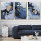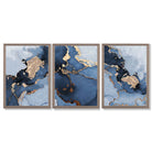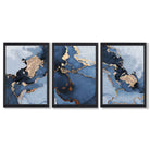 Framed Set of 3 Abstract Art Prints of Paintings Navy Blue and Gold