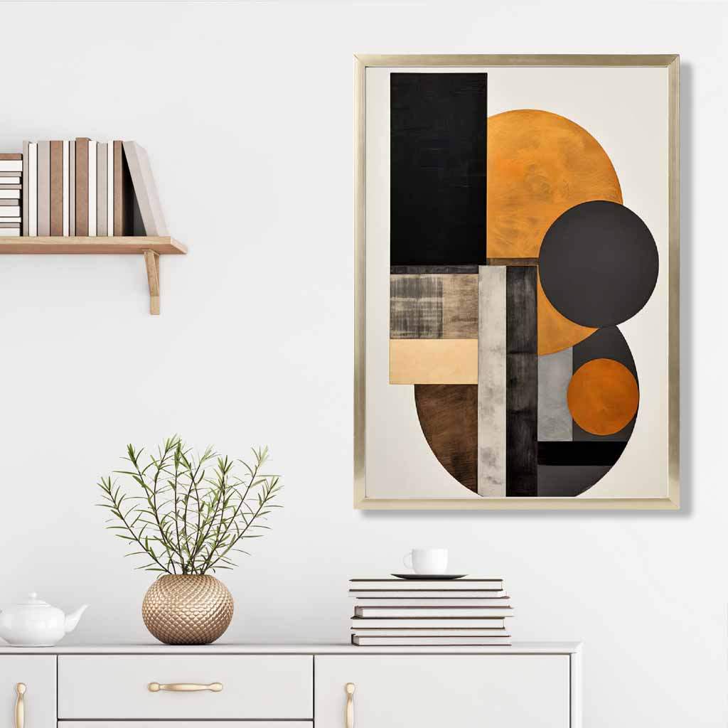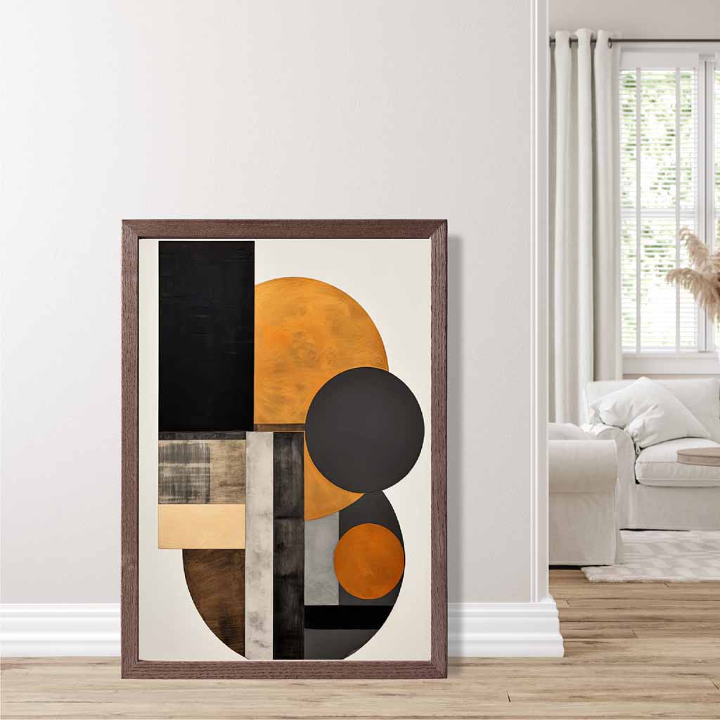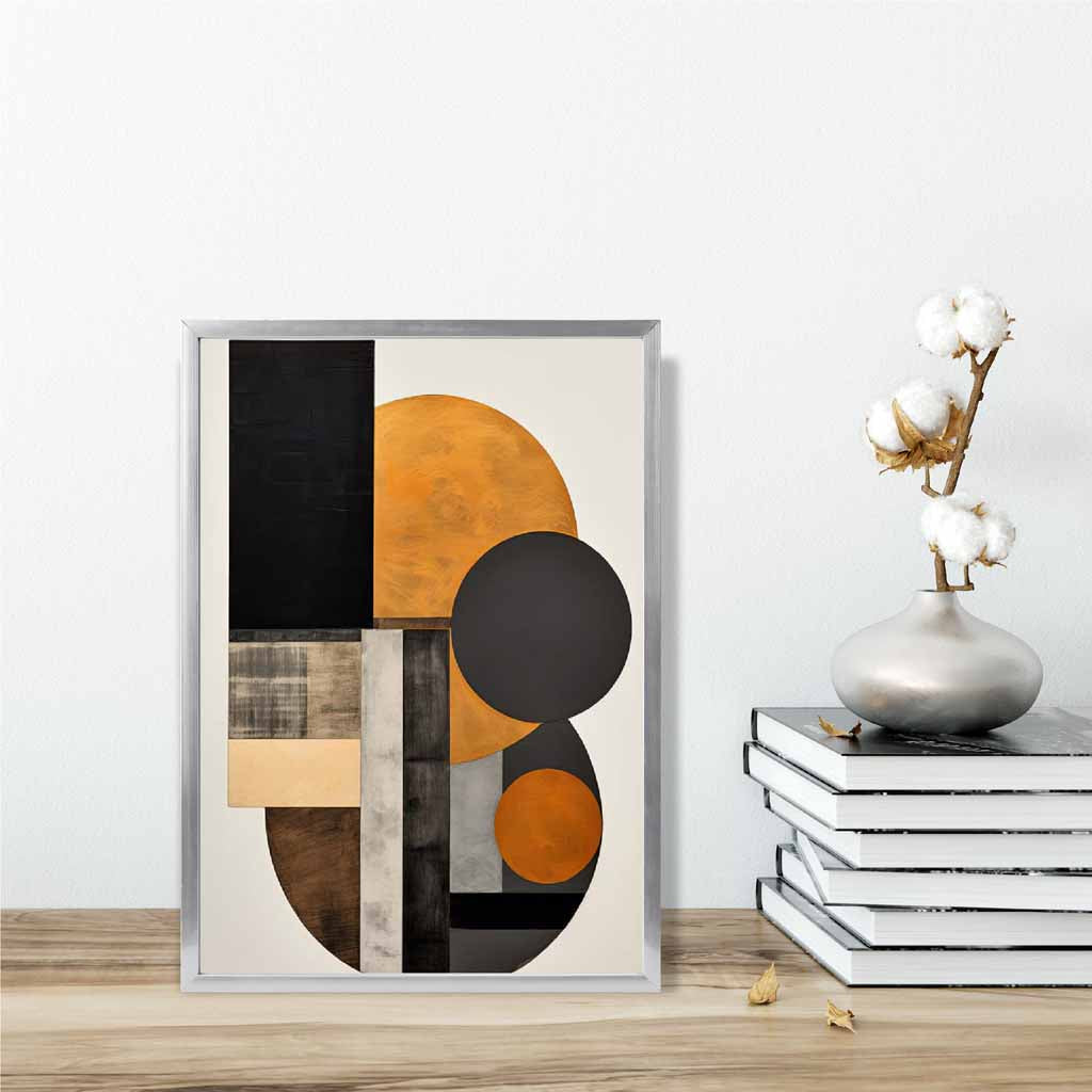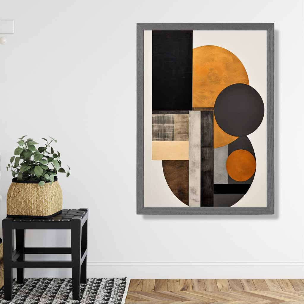 Transform your living space with our Geometric Circles In Orange and Grey Print. This striking wall art features a captivating abstract design that exudes sophistication and inspires strong emotions. Let the bold blend of orange and grey colours elevate your home decor.