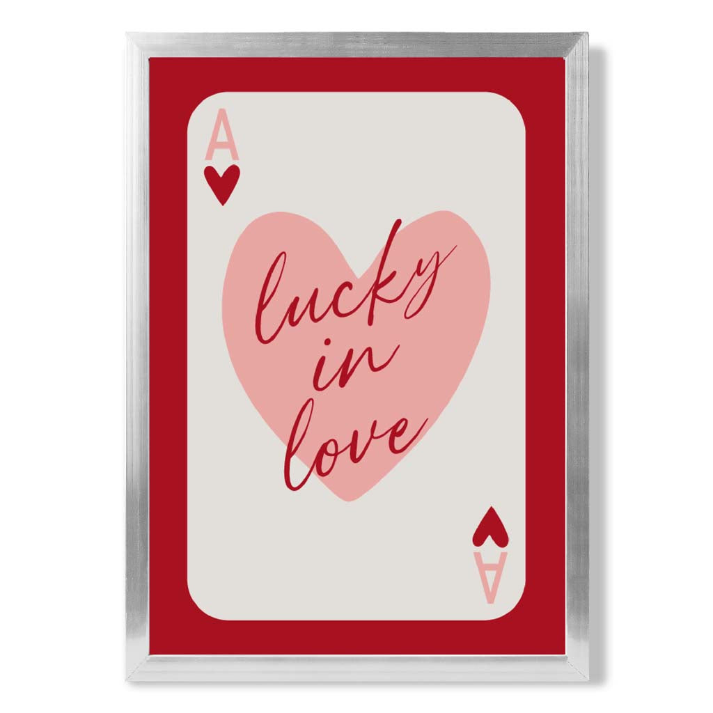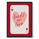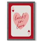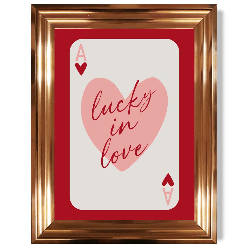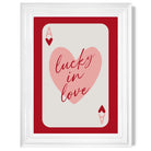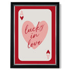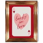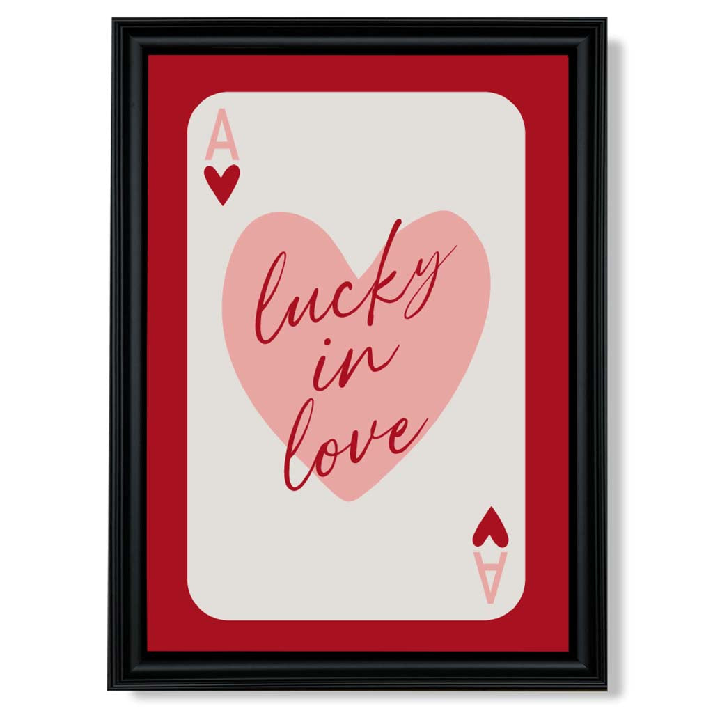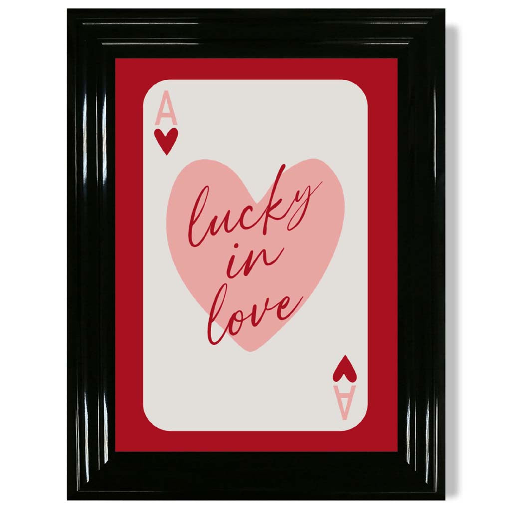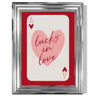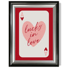 Experience the excitement of love with our Lucky In Love Framed Art Print. Vibrant shades of red and pink, along with the Ace of Hearts playing card, symbolize passion and luck. Perfect for adding a touch of romance to any room. Love is in the air with this stunning piece!