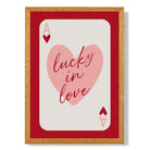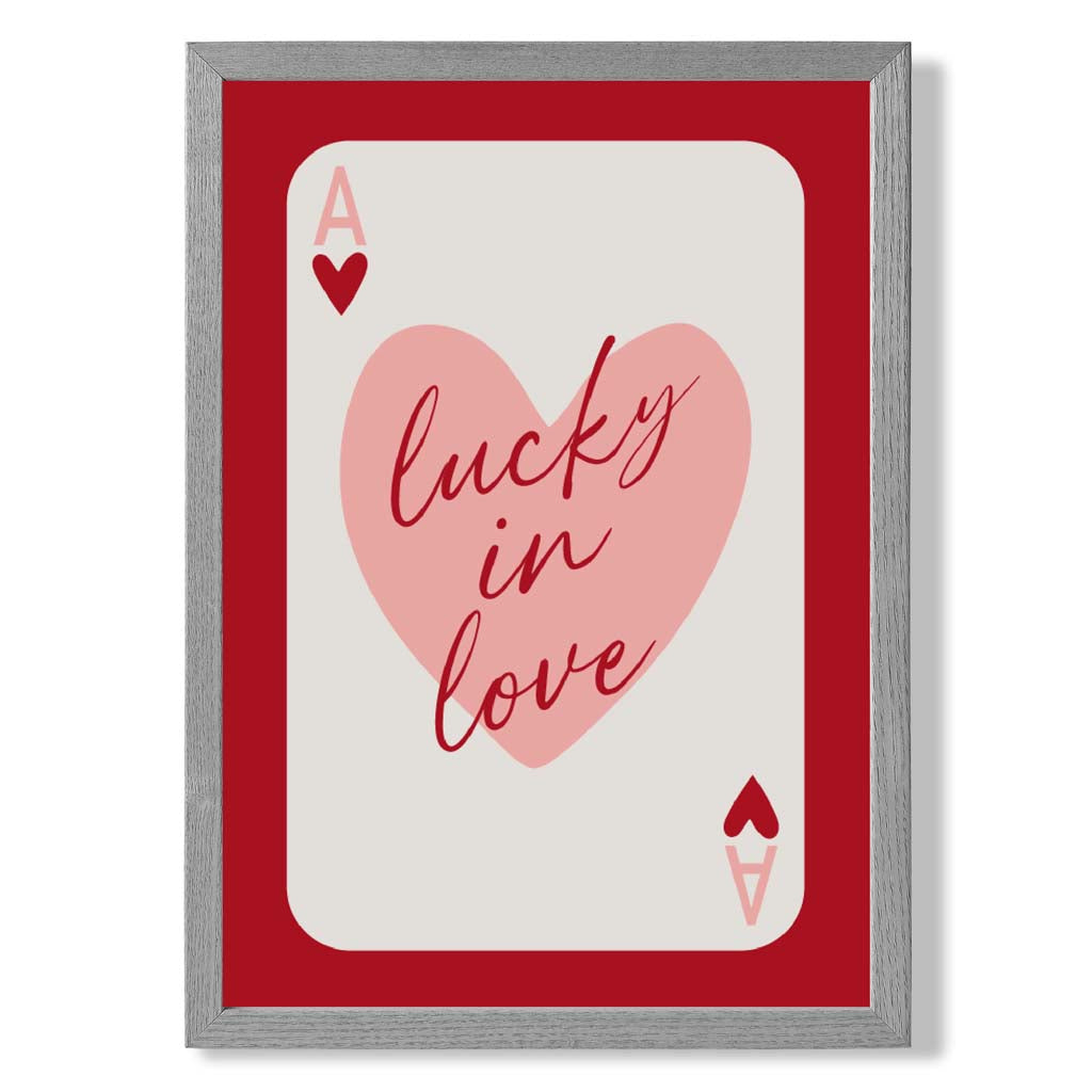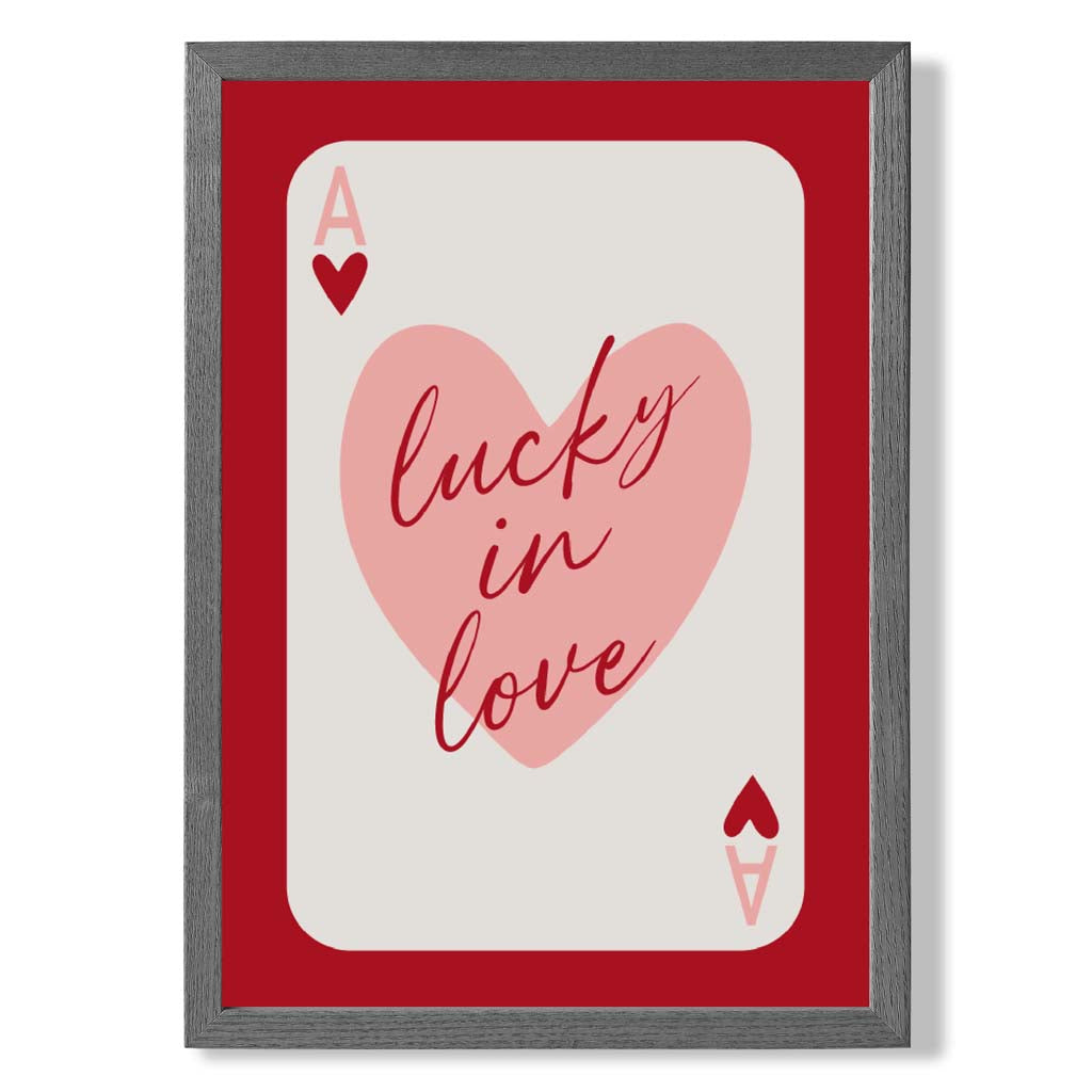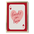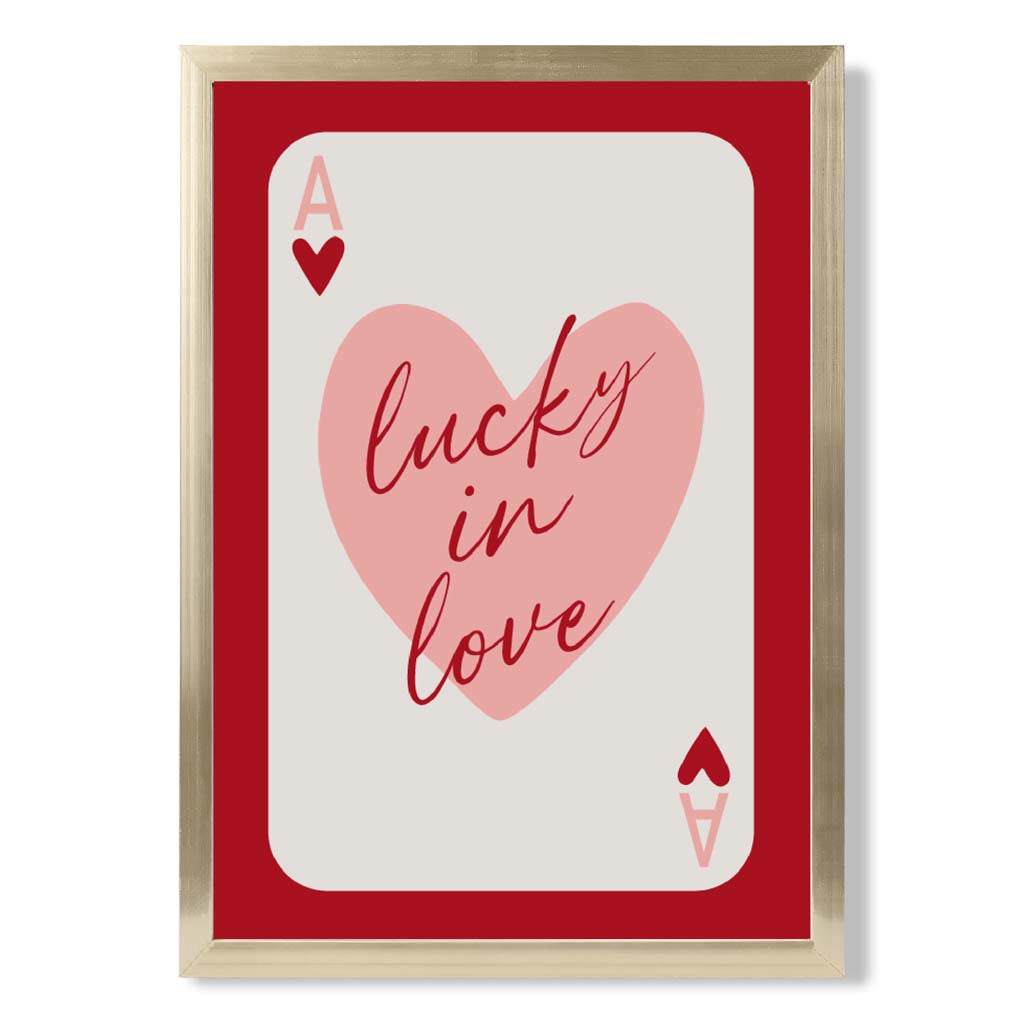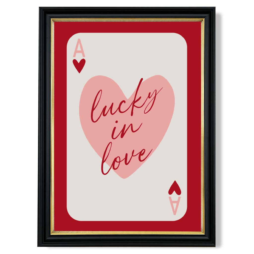 Experience the excitement of love with our Lucky In Love Framed Art Print. Vibrant shades of red and pink, along with the Ace of Hearts playing card, symbolize passion and luck. Perfect for adding a touch of romance to any room. Love is in the air with this stunning piece!