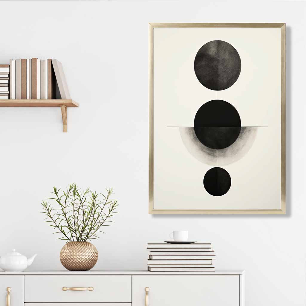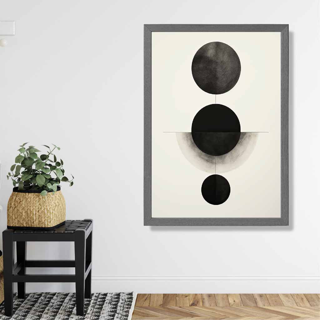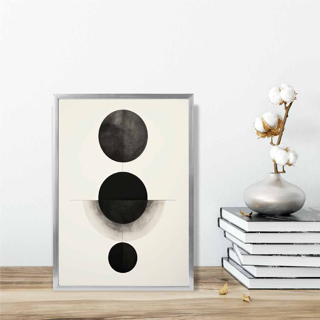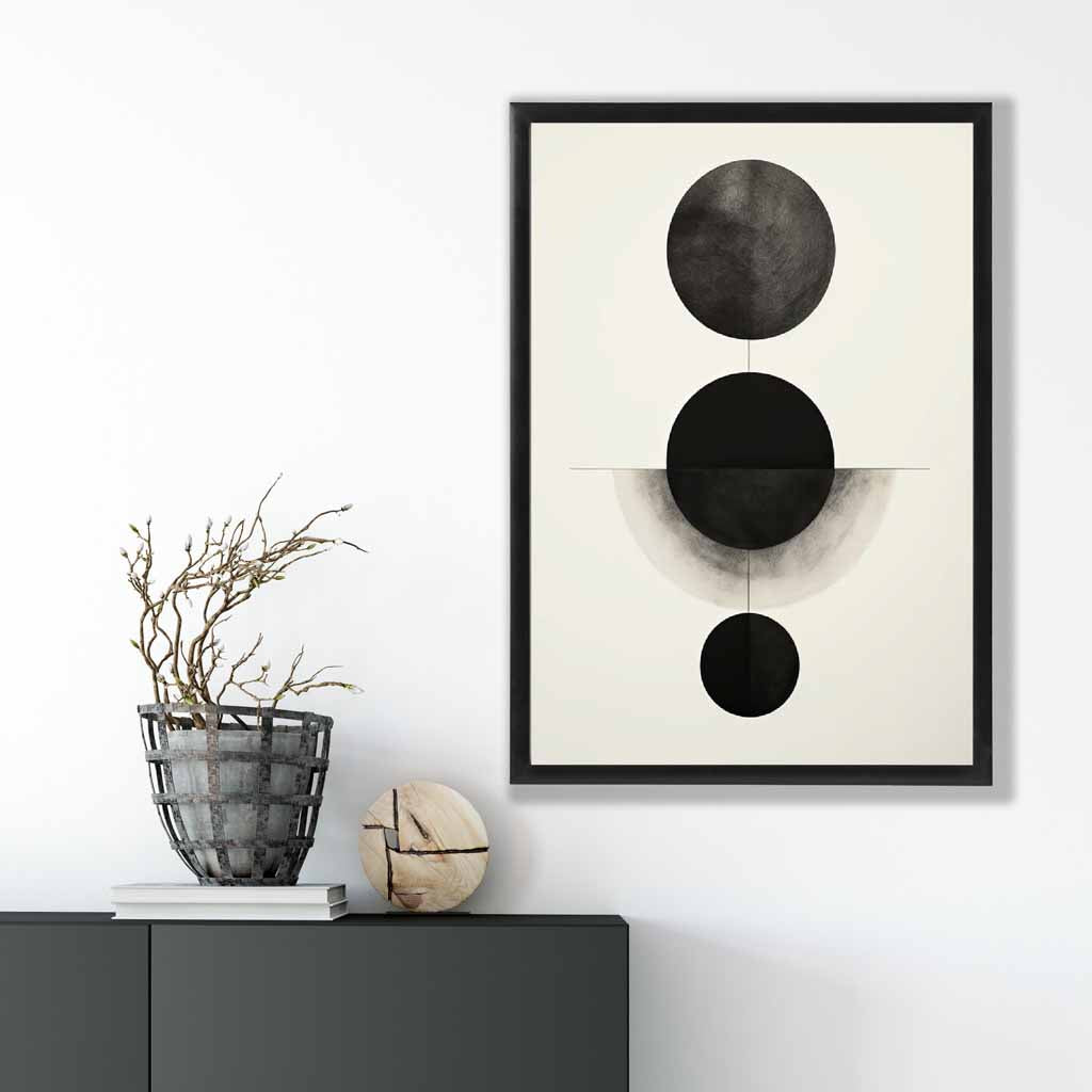 This stunning print features painted circles in elegant ivory and bold black, creating a modern and chic design. Add a touch of sophistication to any room with this unique piece of art. Elevate your space and inspire your senses with this captivating print!