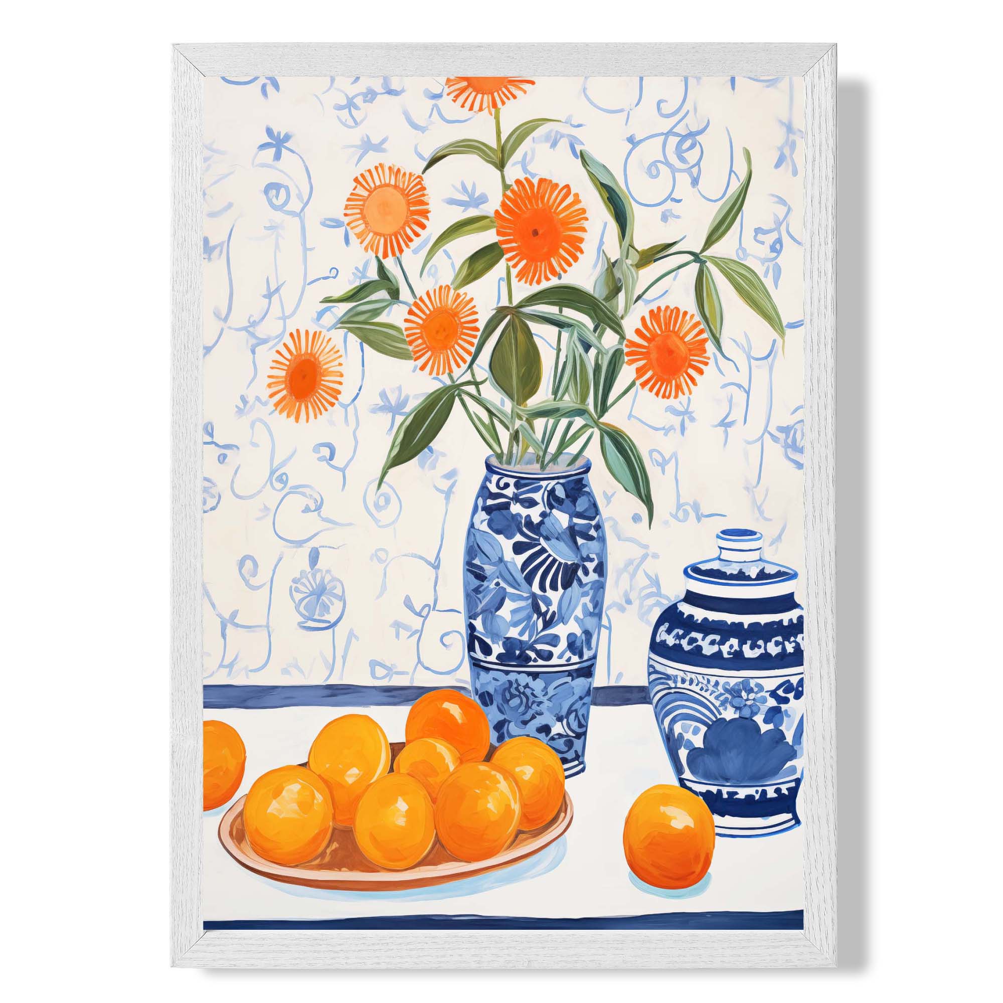 Add a touch of classic beauty to your space with the Painted Flowers and Oranges Still Life No 1 Art Print. This elegant artwork combines soft floral elements with vibrant oranges, creating a warm and inviting atmosphere. Perfect for enhancing your décor with timeless charm and natural warmth, this print brings sophistication and freshness to any room. Elevate your walls with this captivating still life piece.