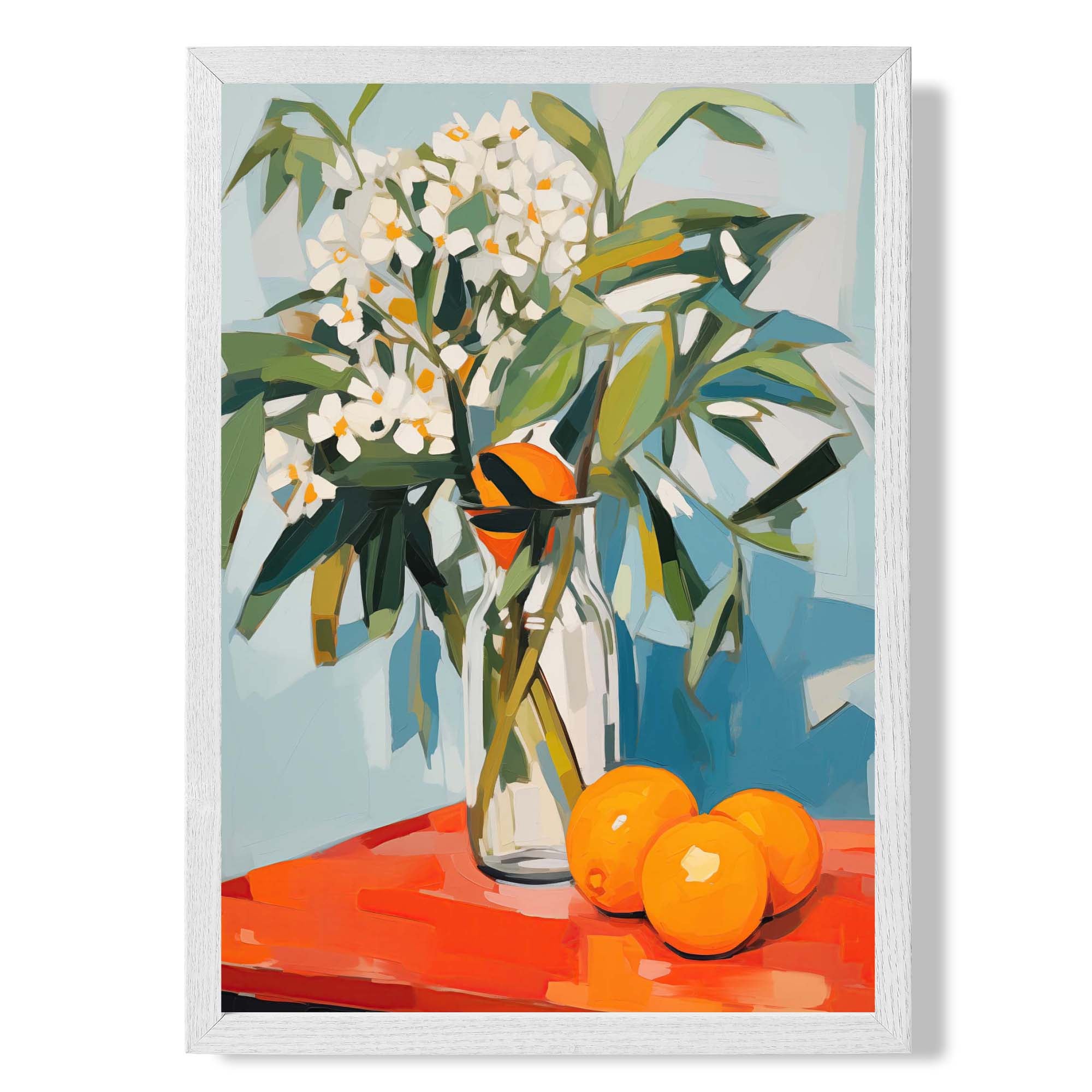 Enhance your décor with the Painted White Flowers and Oranges Still Life Art Print. This elegant composition blends soft white blooms with vibrant oranges, creating a harmonious balance of freshness and warmth. Perfect for adding a touch of classic beauty and inviting charm, this print transforms any space into a serene and stylish retreat. Elevate your walls with this timeless piece that celebrates nature’s delicate artistry.