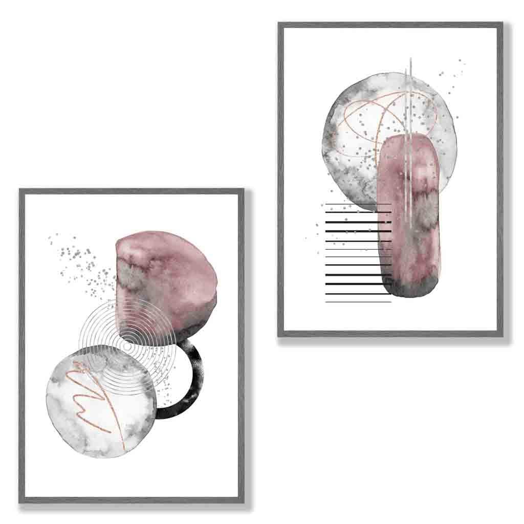 Set of 2 Abstract Pink and Grey Watercolour Framed Wall Art Prints