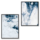 A Set of 2 Watercolour Navy Blue and White abstract Ocean Prints.