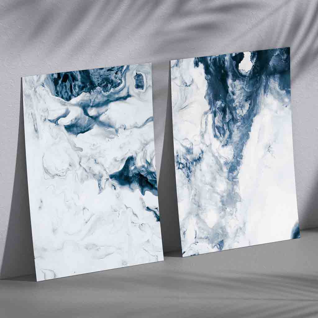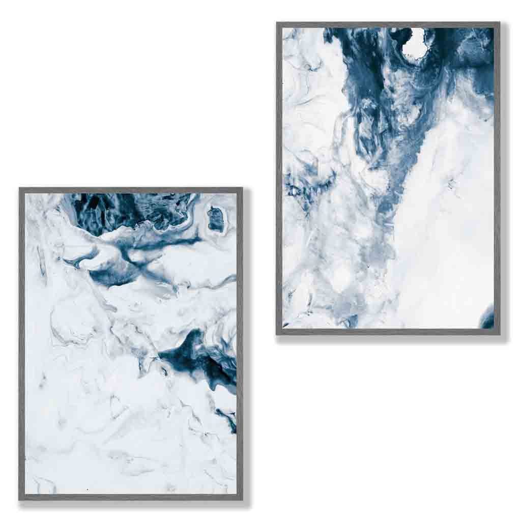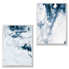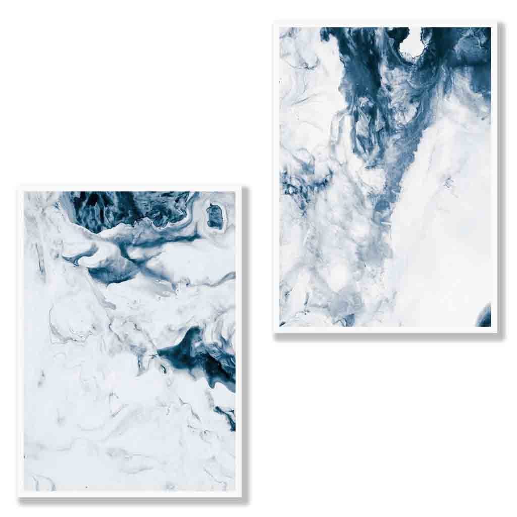 A Set of 2 Watercolour Navy Blue and White abstract Ocean Prints.